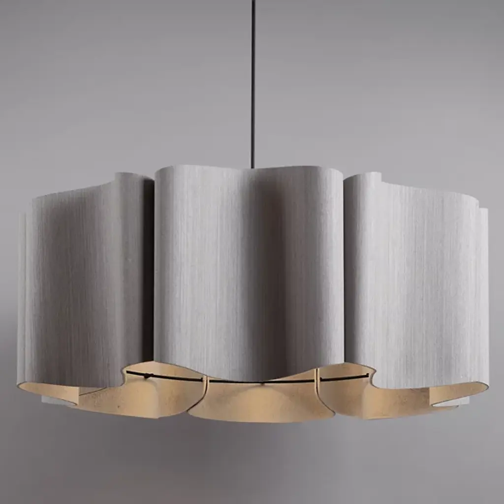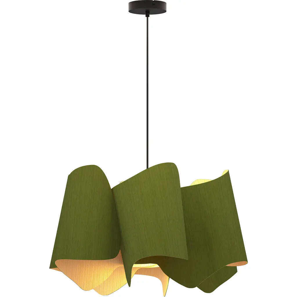 Bring a peaceful silhouette to your modern home with the Paulina Acoustic Pendant from Bruck Lighting. Reminiscent of rising and falling waves, the shade is crafted from a two-sided wood veneer section fused to a central panel for added flexibility. An inner layer of wool provides sound absorption, while the single bulb at the center emits a soft, warm glow that fills the space with a graceful and tasteful ambiance.