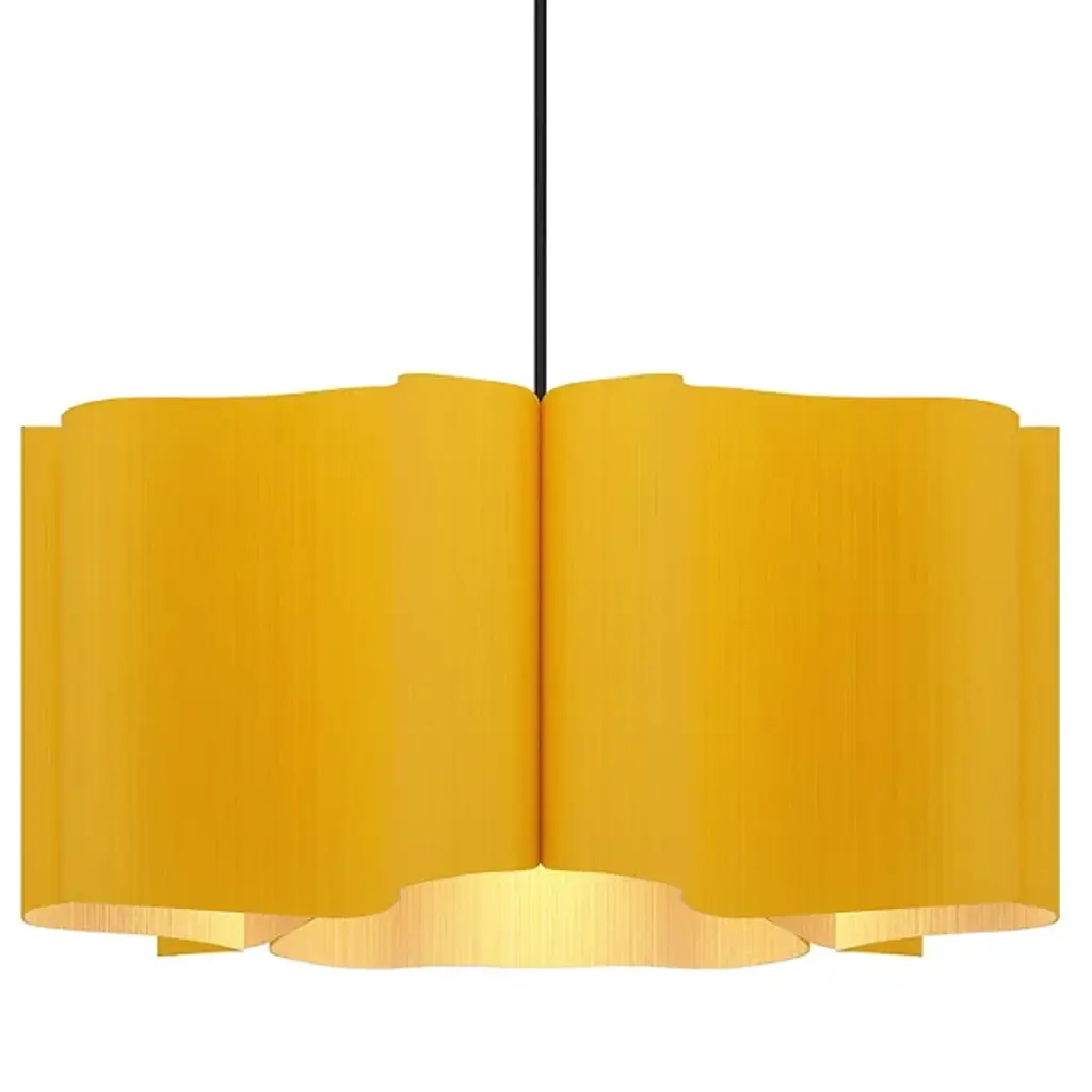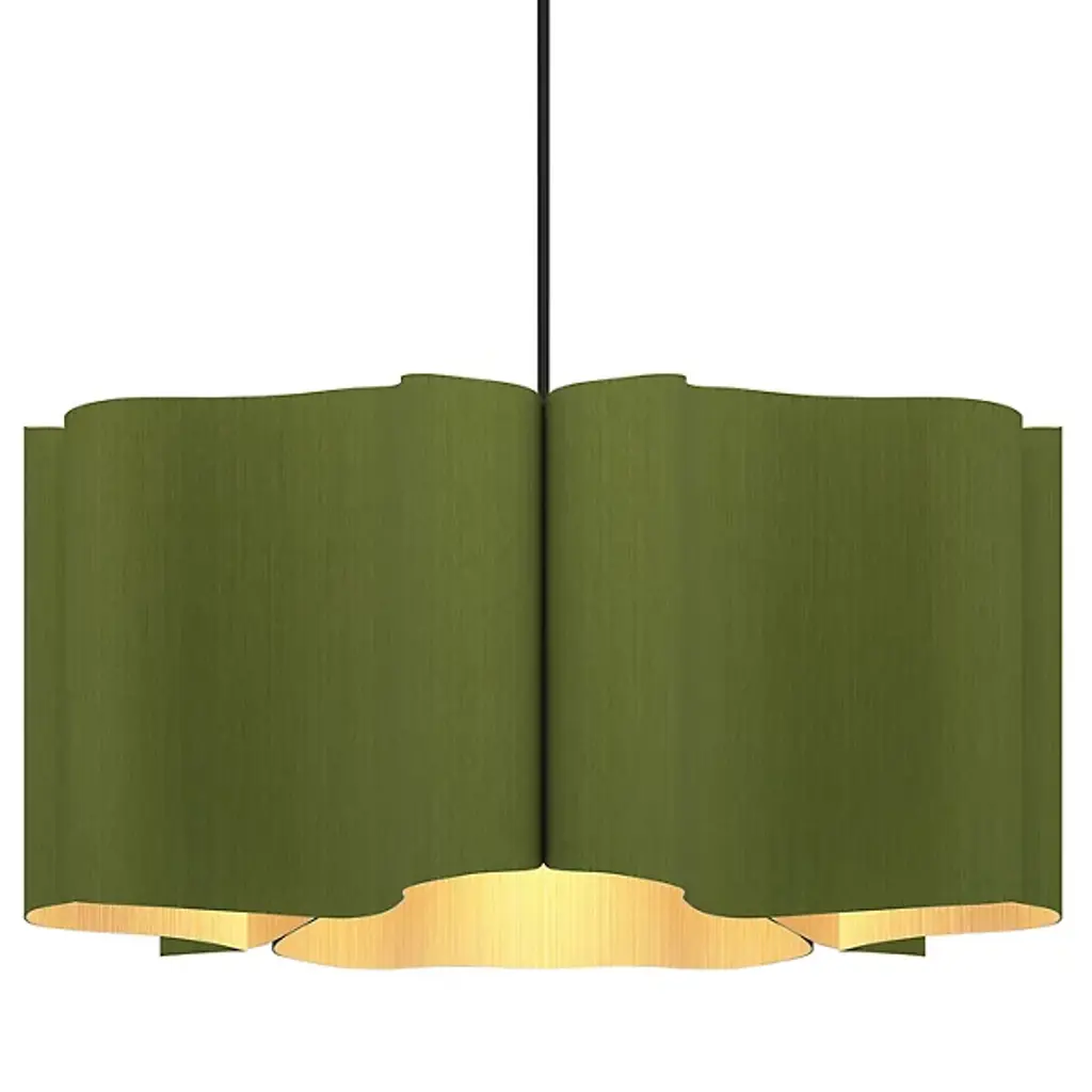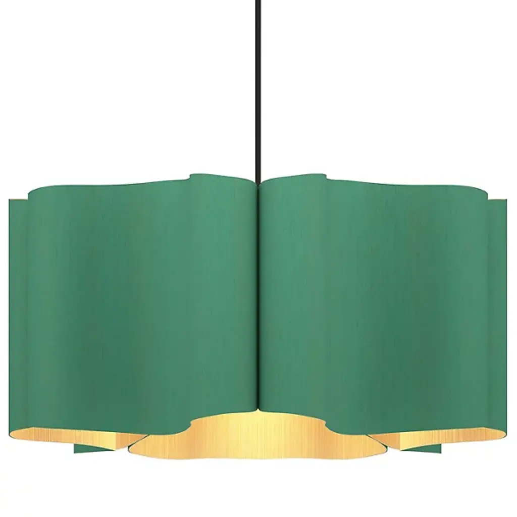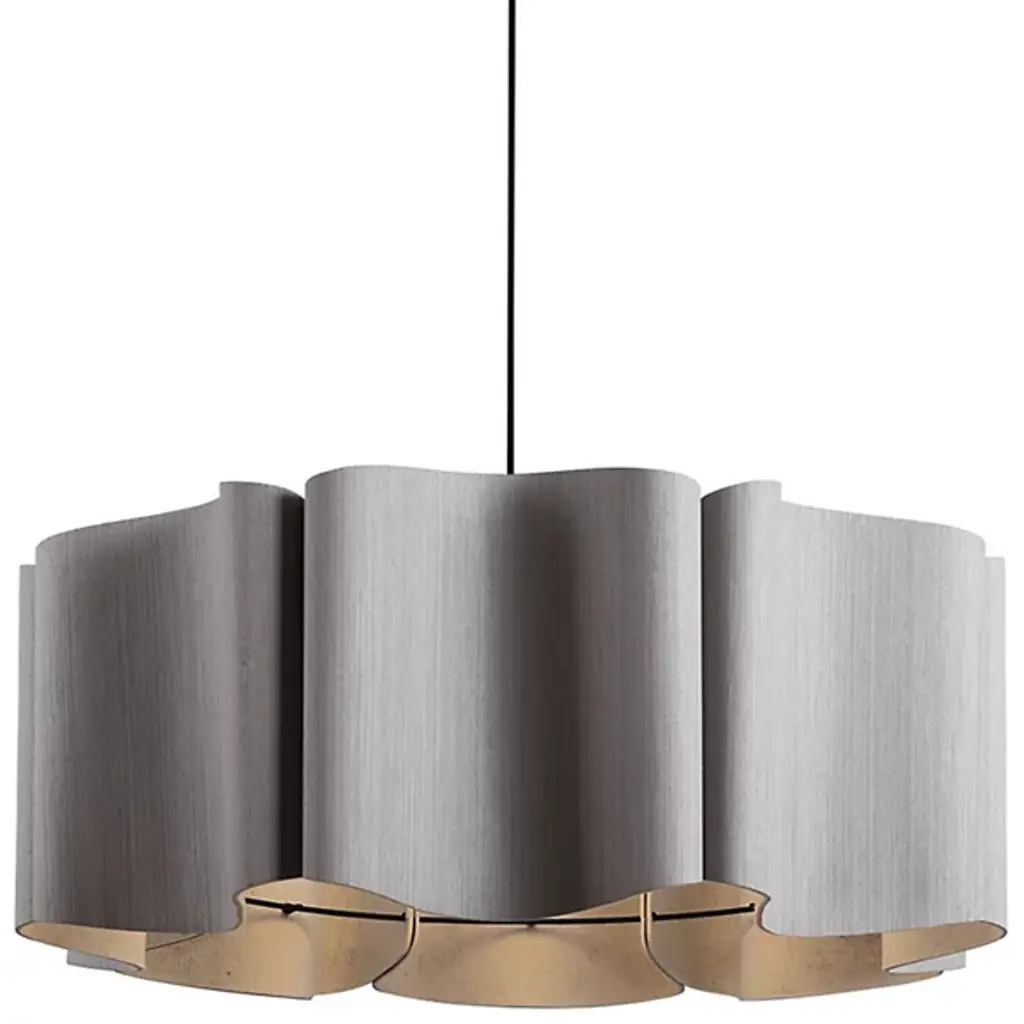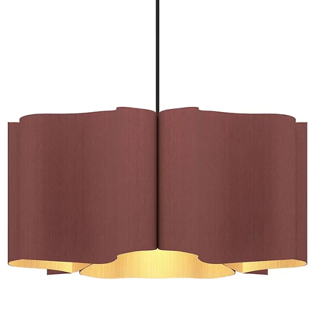 Bring a peaceful silhouette to your modern home with the Paulina Acoustic Pendant from Bruck Lighting. Reminiscent of rising and falling waves, the shade is crafted from a two-sided wood veneer section fused to a central panel for added flexibility. An inner layer of wool provides sound absorption, while the single bulb at the center emits a soft, warm glow that fills the space with a graceful and tasteful ambiance.