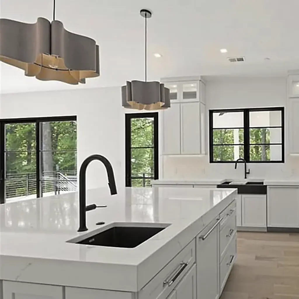 Natural modern lighting with plenty of sophistication, the Paulina Drum Pendant by Bruck Lighting offers a curvy and unexpectedly glamorous twist on the classic drum pendant. It is crafted by bending and connecting several panels of flexible, yet strong, Reconstructed Wood Veneer. The unique lines of the shade, along with the natural material used, are inspired by diverse natural landscapes. As part of the Wood Ecological Project (WEP), this pendant adds a warm glow and a pleasingly natural design element to a large, elegant dining table.