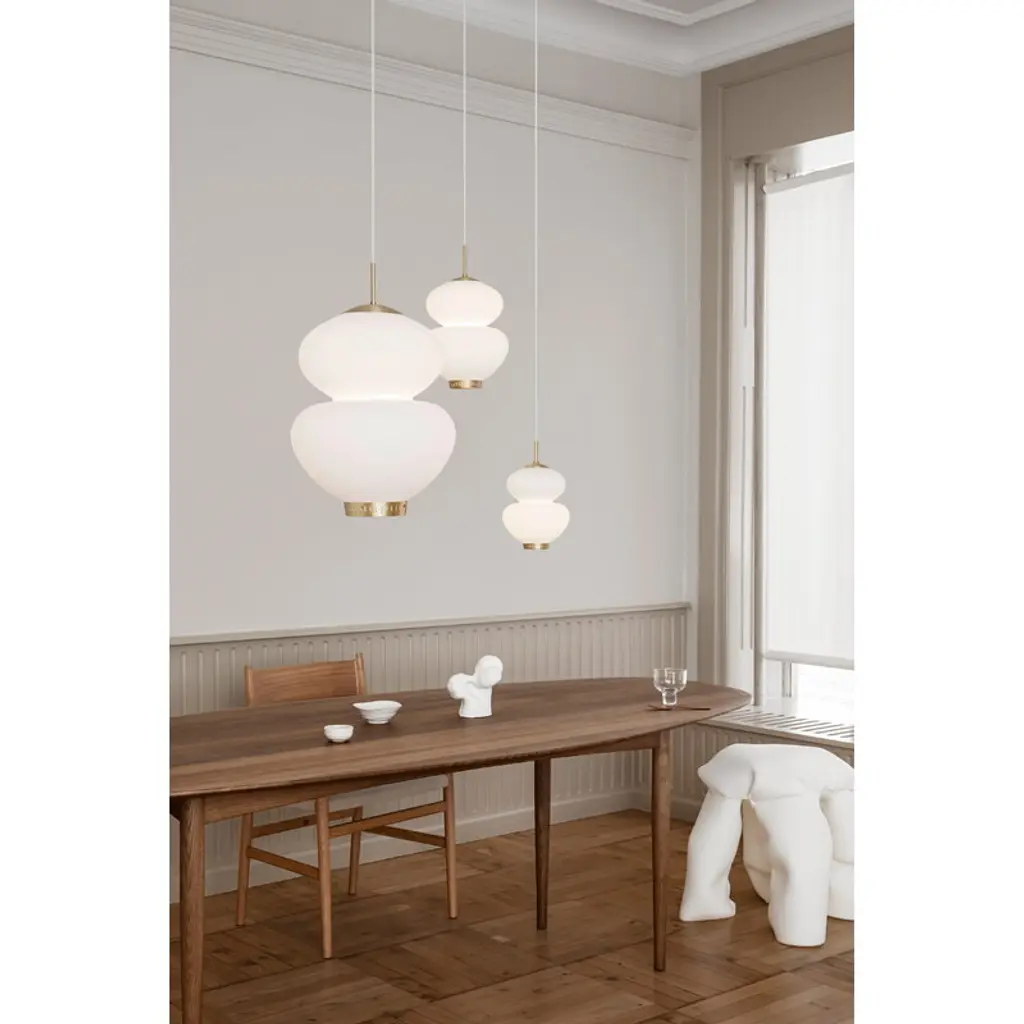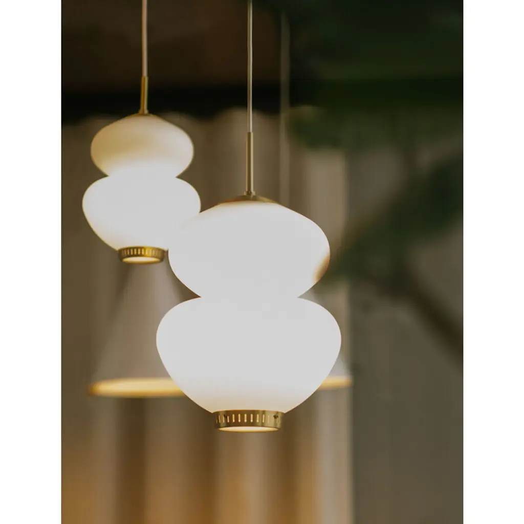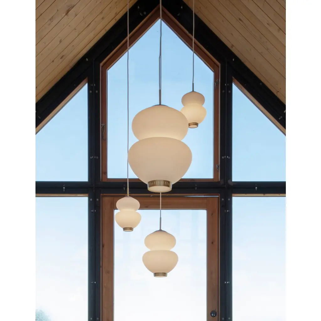 LYFA’s Peanut pendant lamp delights with its playful design conceived by Danish designer Bent Karlby in 1946. The luminaire borrows both its name and form from the organically flowing lines of a peanut shell. The Peanut luminaire is handcrafted from opal white glass and finished with charming brass details. The 3 layers of glass in the lampshade result in lighting that is even, soft and atmospheric, making Peanut luminaire ideally suited as a bedroom or living room luminaire. In addition, the pendant light looks beautiful above the dining table, either individually or as a group of several luminaires of different sizes.
