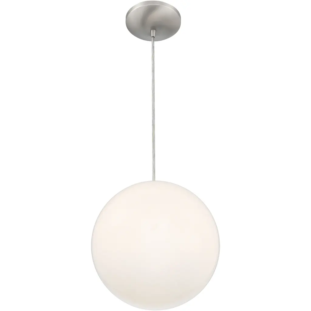 Pearl Small Pendant - Brushed Steel Finish - Opal Glass Diffuser - Clear Cord