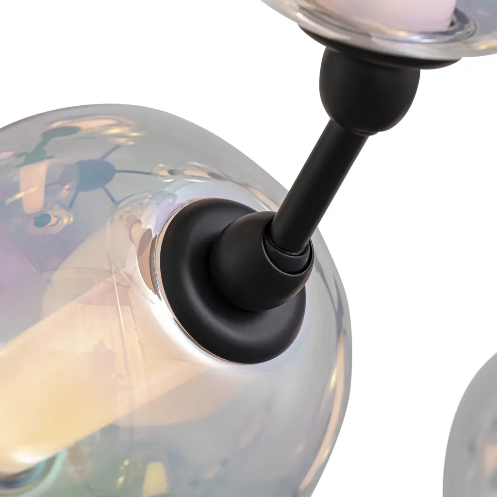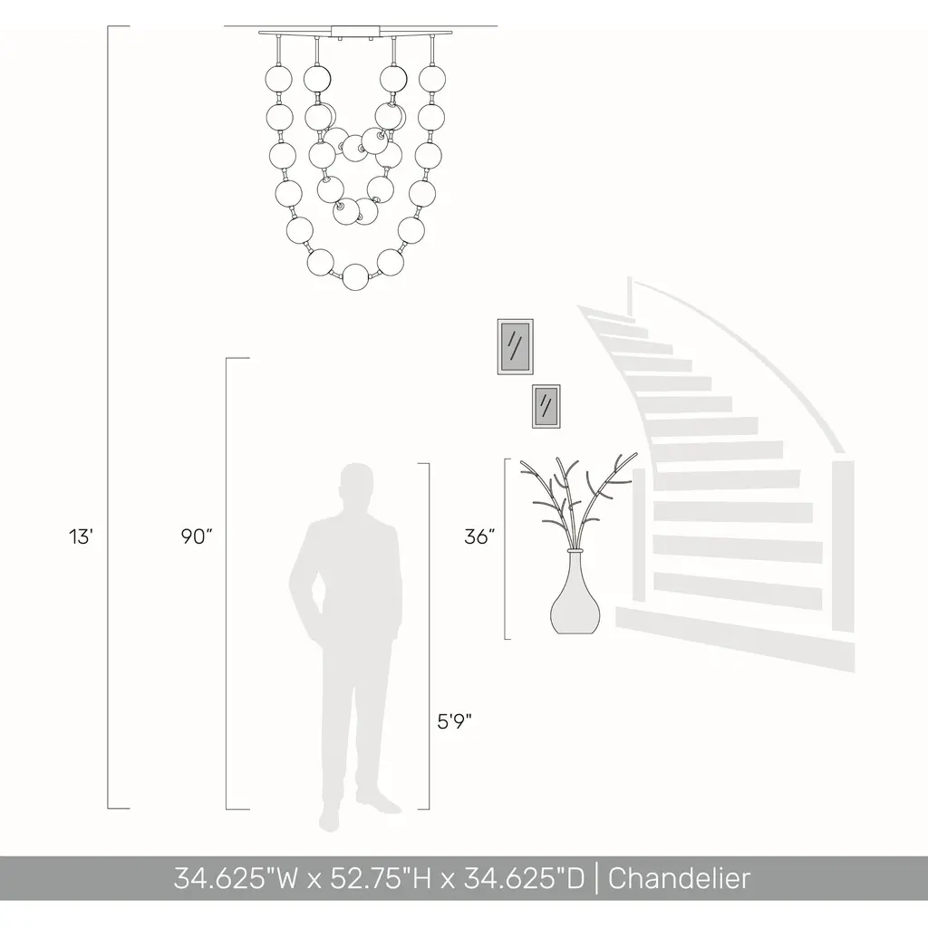 Infuse glam elegance into your home with the Golden Lighting Pearla Integrated LED 35in Pendant. Featuring a glass shade and a matte black frame, it creates a welcoming ambiance. The stunning iridescent glass shade captures light in a mesmerizing way, ensuring a playful elegance to your space with a dynamic color display. Crafted in a timeless matte black finish, this pendant offers a smooth texture that absorbs light, fitting seamlessly into any decor style. Ideal for kitchens, dining rooms, or bedrooms, it is rated for dry locations, making it perfect for indoor use. Easy installation is facilitated with included mounting hardware, complemented by energy-efficient illumination from the integrated LED technology that provides 4455 lumens with a warm 3000K glow. Overall Dimensions: 34.63"W x 52.75"H x 34.63"D. Make a statement in your home with the Golden Lighting Pearla pendant, a perfect blend of style and quality.