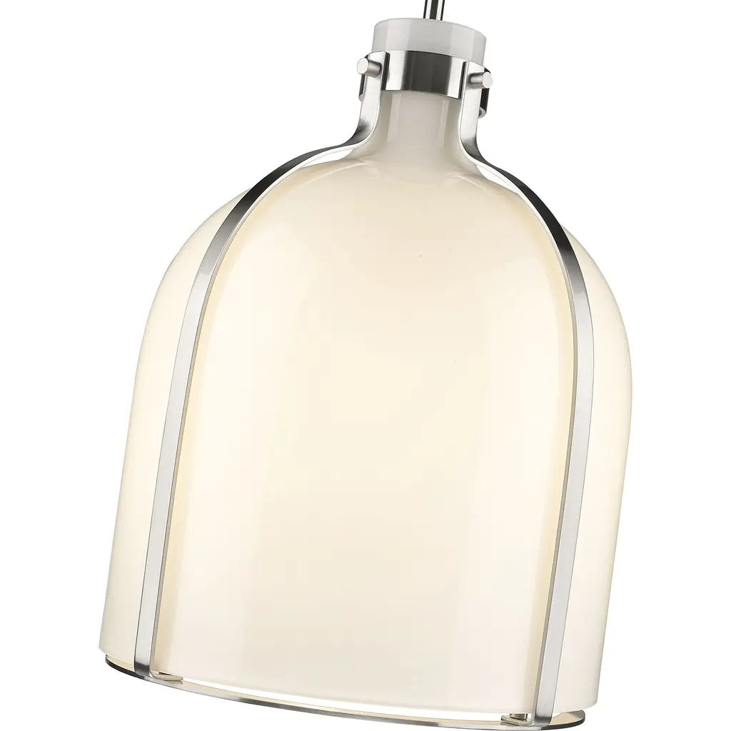 This one-light chandelier will bring modern farmhouse appeal to your dining room, kitchen island, or breakfast bar. It features a steel construction with a brushed nickel finish and a white opal glass shade to diffuse the light. The crisp and clean design of this chandelier makes it a focal point in your space.