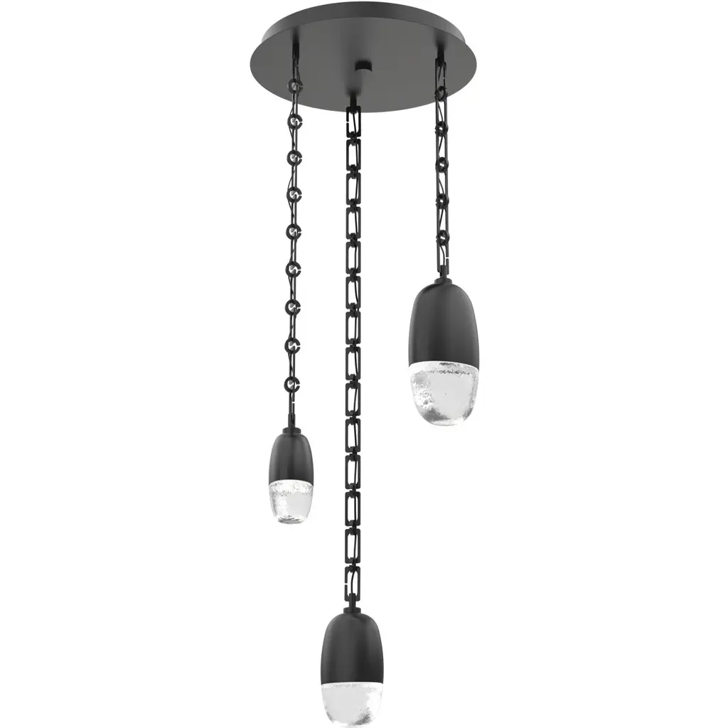 A versatile lighting solution ideal for a wide range of contemporary and modern spaces, this round multi-pendant design features a round canopy with 3 Pebble pendants in artisan cast glass. Suspension options include cloth-braided cord or handcrafted chain in three vintage-inspired styles.