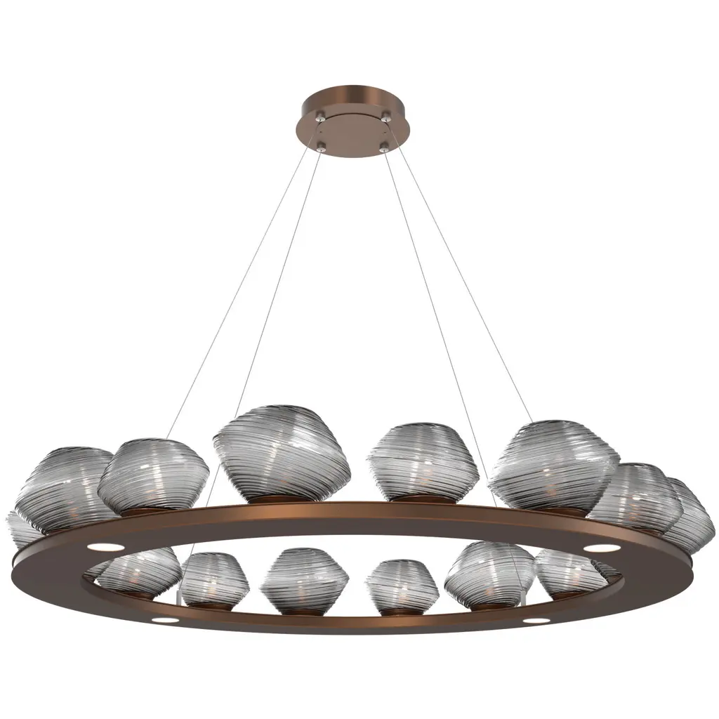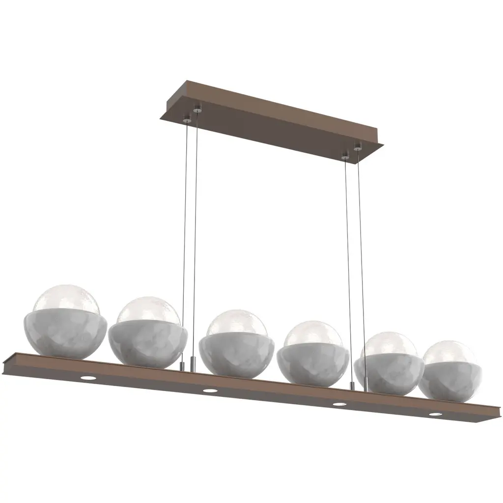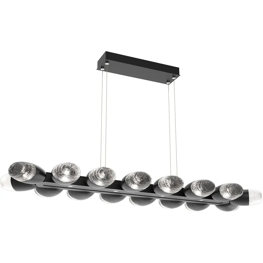 Pebble Linear Suspension 48" Small Glass-Burnished Bronze-Pebble Clear-Stainless Cable-LED 3000K