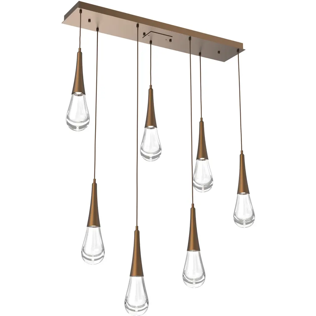 Pebble 7 Linear Multiport S/M/L Glass-Flat Bronze-Pebble Clear-Cloth Braided Cord-LED 2700K