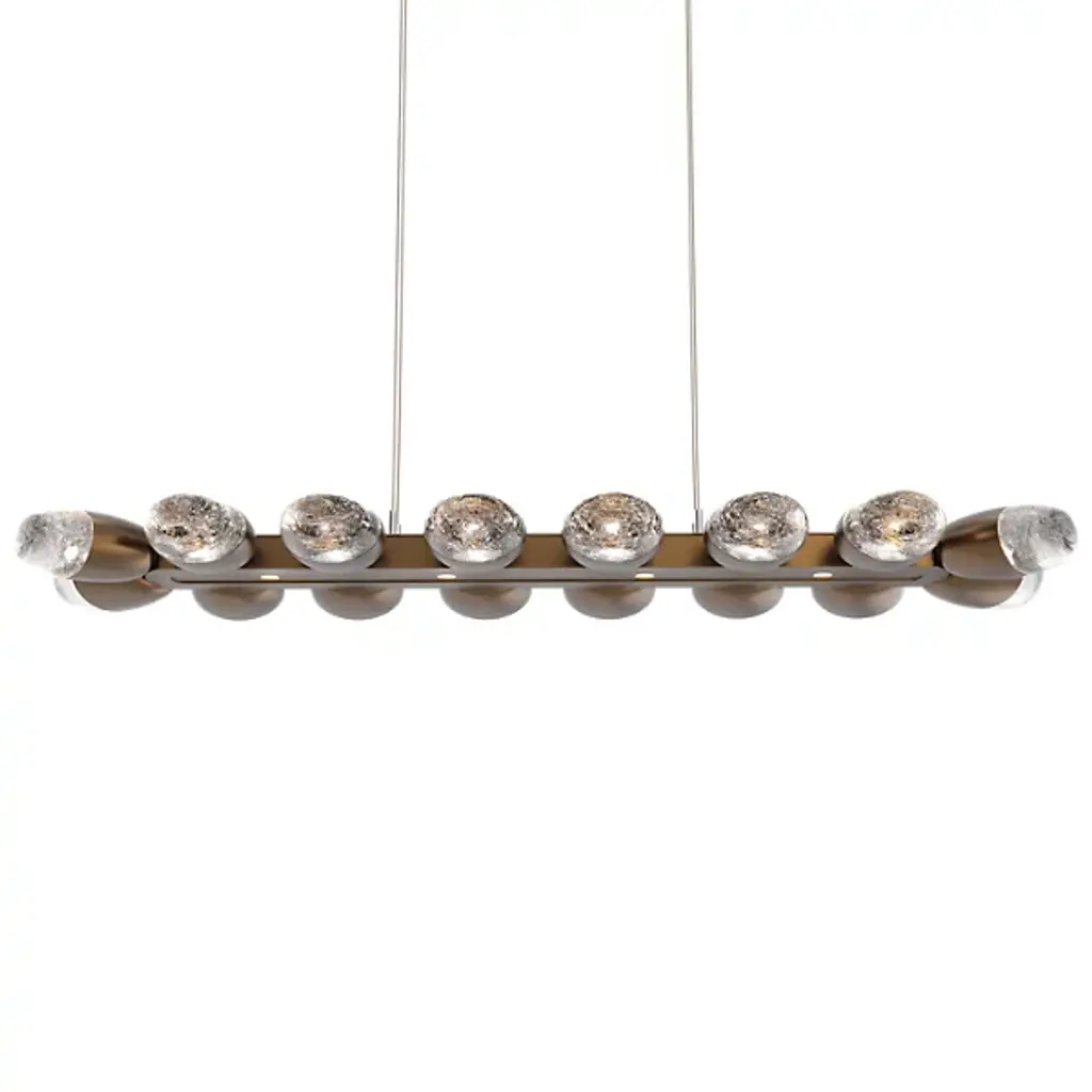 Pebble Linear Suspension 60" Small Glass-Gilded Brass-Pebble Clear-Stainless Cable-LED 3000K