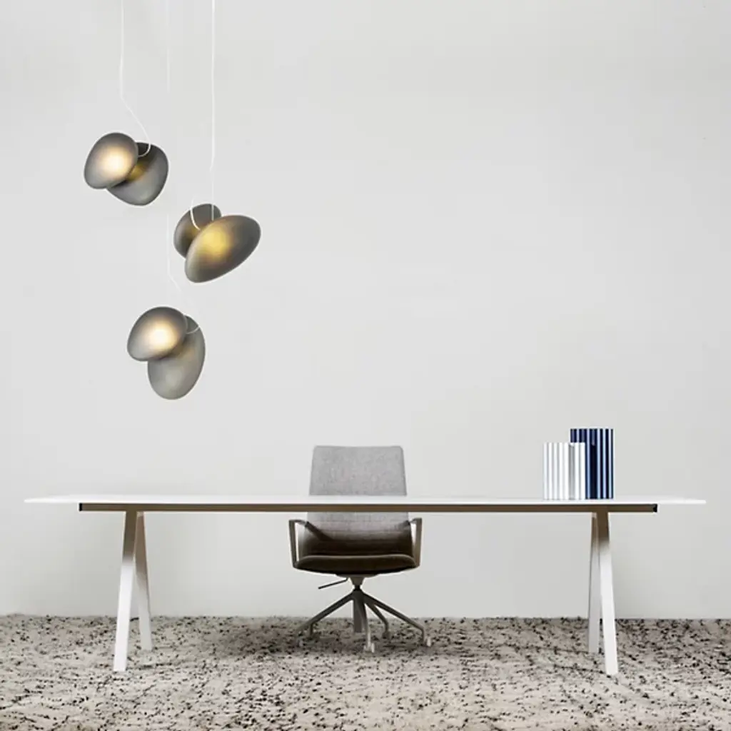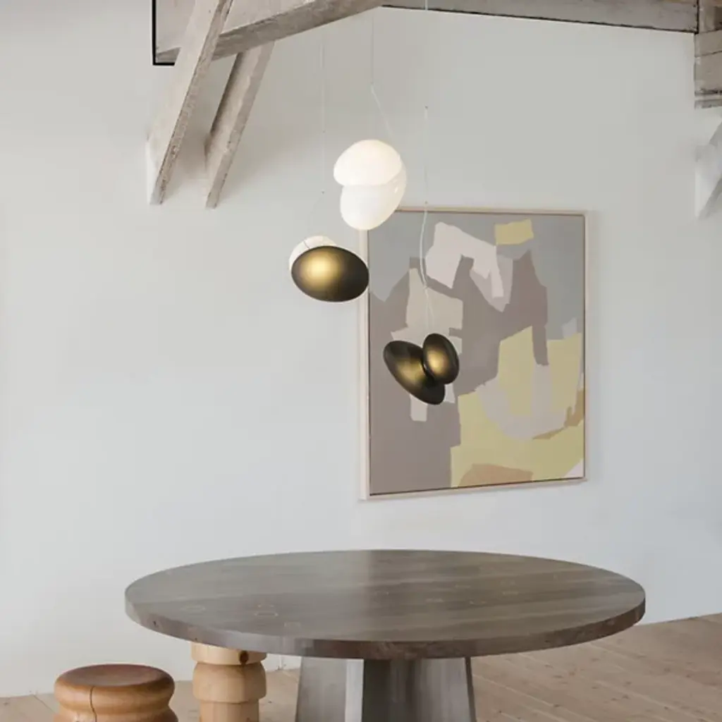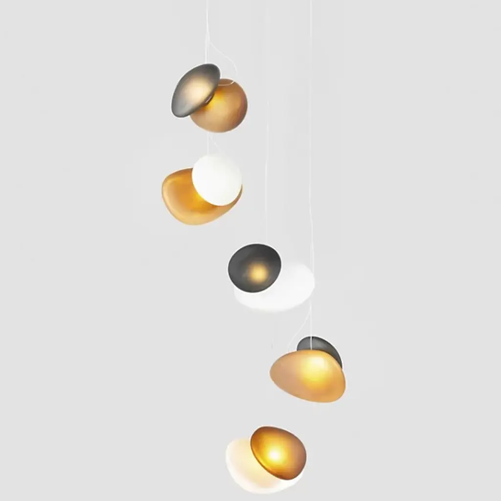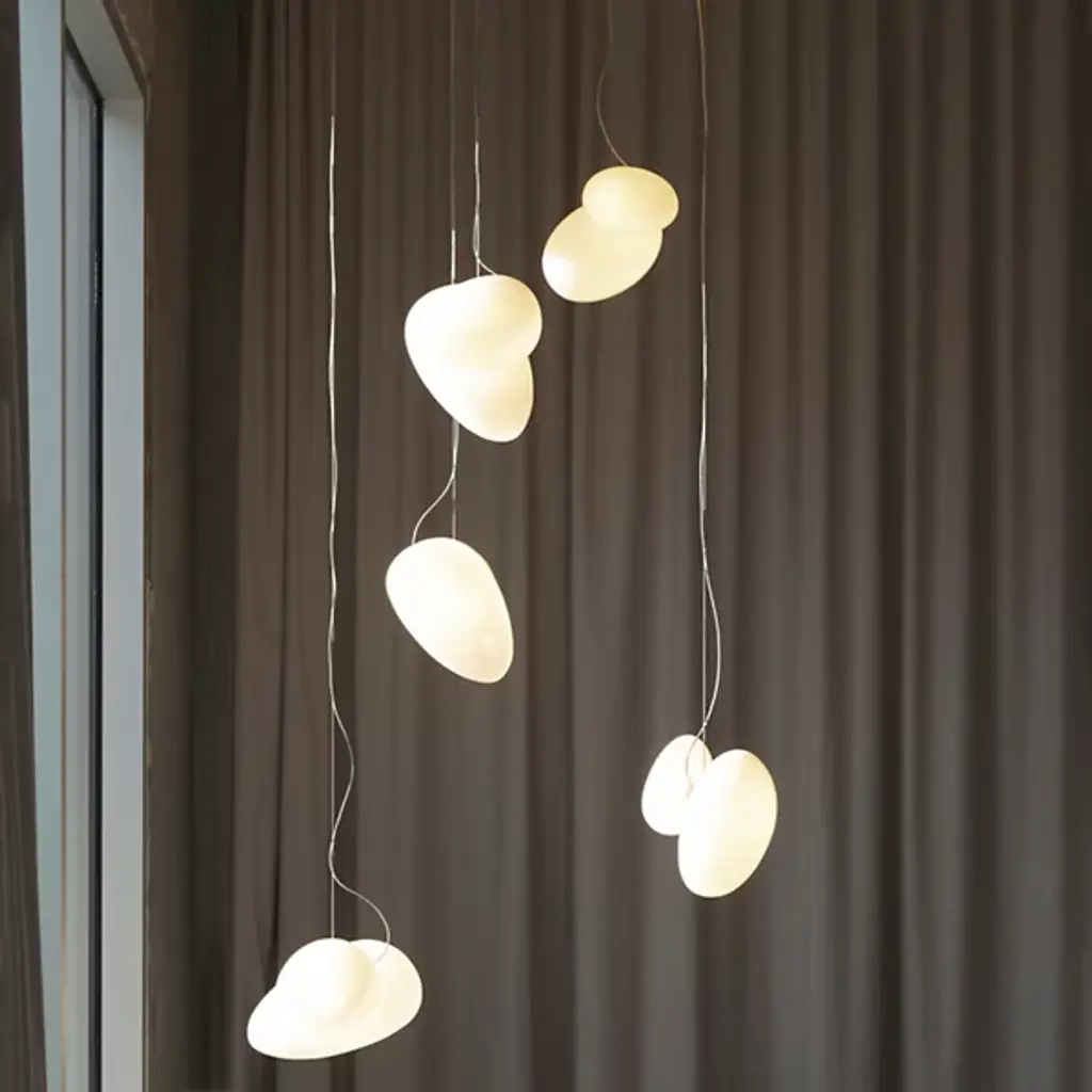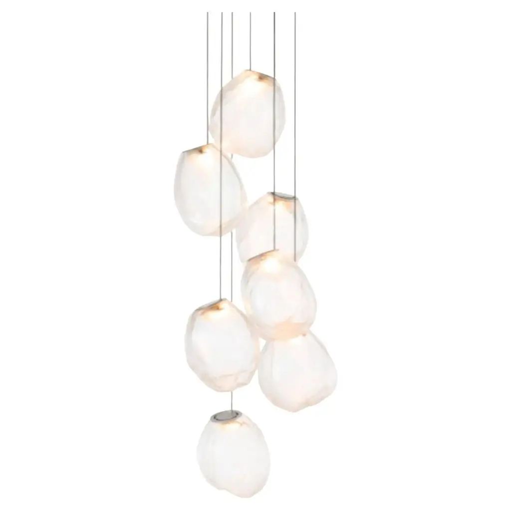 Bring a considered warmth to large inside ceilings with the stylish fall of the Pebble LED Multi-Light Pendant from ANDlight. An open design with natural appeal, the look was inspired by that of river rocks. It drops several lengths of wire from a stepped, sleek metal canopy, placing bright LED lamping inside translucent glass shades with an organic appeal. Each pebble shade is attached to a slightly smaller one, gentling bright glare from all sides and spilling out a pleasing, even glow below.