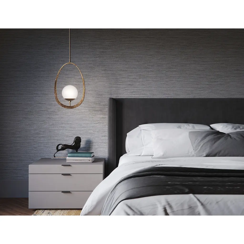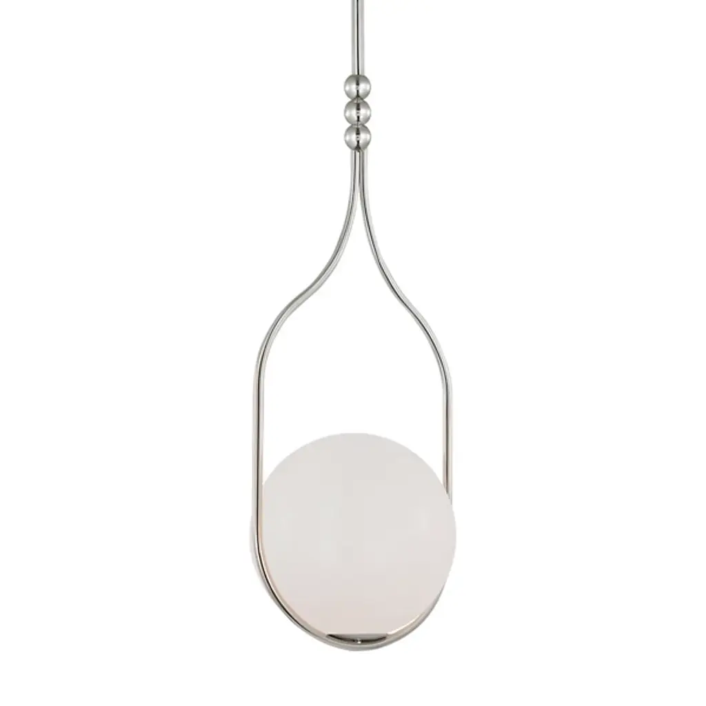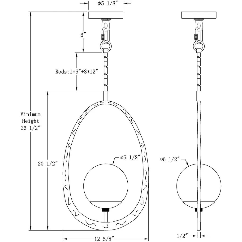 A delicate metal frame wearing a Painted Gold Hammered finish displays a single frosted glass globe light, which floats in the middle of its silhouette. Install multiples of these above an island for an artistic, modern statement. Also available in a Black Matte hammered finish.