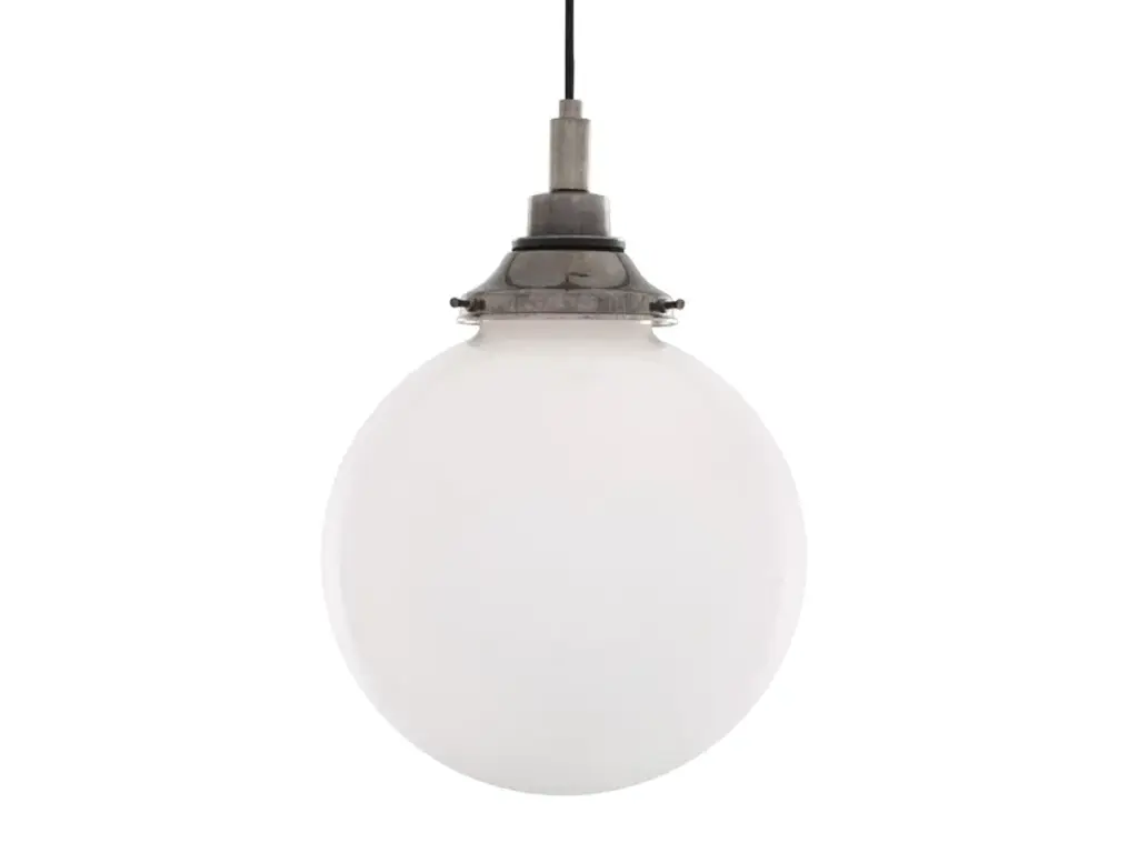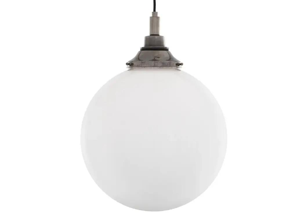 The PELAGIA pendant is a glass globe pendant light with a 20, 25 or 30 cm opal glass shade. This bathroom globe light is rated IP44. This means it can be safely installed in most bathroom and outdoor locations. The PELAGIA pendant has a simple glass ball shade that is attached to a sealed brass gallery. The gallery is available to order in antique brass, antique silver, polished brass, satin brass, and powder-coated matte black or white. A matching ceiling rose is supplied with each globe pendant light. One meter of braided fabric cable is also supplied with the PELAGIA pendant as standard. Longer lengths are available on request.Max Wattage: 40WLampholder: E27 | Plastic | ES | Edison Screw | 2 Core CableVoltage: 220V/240VIP Rating: IP44Protection Class: Class IIGlass Code: GL044E