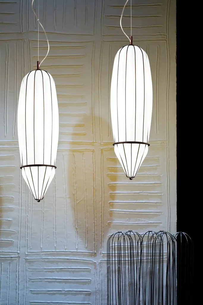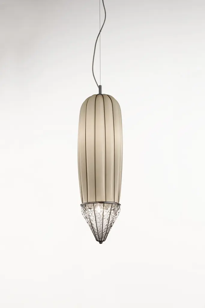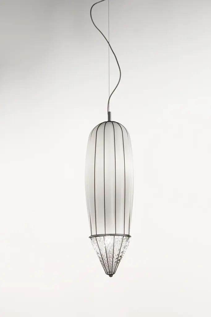 The youngest of the group was inspired by the most basic necessity of designers ...the pencil. The project confirms the typical Siru processing while conceiving for the first time two parts blown with different textures and colors.Murano glass pendant lamp.