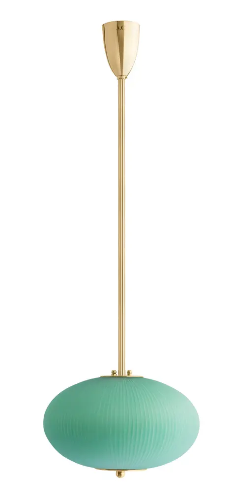Pendant China 07 by Magic Circus Editions.Dimensions: H 90 x W 32 x D 32 cm, also available in H 110, 130, 150, 175, 190 cm.Materials: brass, mouth blown glass sculpted with a diamond saw.Colour: jade green.Available finishes: brass, nickel.Available colours: enamel soft white, soft rose, jade green, mustard yellow, rich grey, opal grey; For the tubes: black, red brick.All our lamps can be wired according to each country. If sold to the USA it will be wired for the USA for instance.Rethinking, reimagining, redesigning familiar objects that we look at every day without ever really seeing them and using light to tell stories, this how Marie-Lise Féry sees her work. Offering a new take on our urban heritage, changing our perspective through her work on scale and usage. Since 2015, Magic Circus Éditions has been setting the world of lighting ablaze, creating airy, playful and magical designs that merge retro with sleek and contemporary. A free-spirited antiquarian, founder Marie-Lise Féry draws inspiration from the world of cabarets and the magic of the circus to give shape to imaginative, fun and playful collections. The air of magic she breathes into her work reveals a wealth of interpretations and widens possibilities for creative interiors. The combination of traditional know-how — outstanding craftsmanship — and her imaginative take on historical, everyday objects lends an unexpected and charming quality to her creations.Féry’s lights are designed just like magic lanterns — precursor to modern-day cinema —, inspiring wonder through oversized, seemingly weightless compositions and understated references. Each collection has its own inspiration: the first models of street lighting for Collection 01; the happy memories of funfairs, sweets and balloons for her latest collection Balloon; the Far East for Collection 02; and the colourful, carefree spirit of the 1970s for Pop-Up, released in 2019. Magic Circus Éditions draws on airy designs, dream-like inspirations, colours and fun to create a sense of enchantment.Magic Circus Éditions founder Marie-Lise Féry was born in Paris. After studyingart business, she moved to New York to start her career. Fascinated by the city’s architecture, she found an endless source of inspiration in the Big Apple’s monumental decors. Returning to France to settle down in Lyon, she opened an antiques gallery named Un Château en Espagne, and started telling her own stories through objects she gleaned on markets all around the country. A way for her to perpetuate her mother’s motto: “Objects with a soul will always belong”. Since 2015, the year she established Magic Circus Éditions, she has moved on to lighting as a new medium for telling her stories, bringing the magic of the show into home interiors. With her love for the circus, turn-of-the-century cabarets and music halls, Marie-Lise Féry’s love of unusual objects has remained strong, but now prefers to focus her attention on pieces she has imagined herself. With a fun and light-spirited approach, she creates a bold visual effect that elicits instant attraction. She collaborates with some of Europe’s greatest artisans, from Prague and Murano to Clermont-Ferrand, working for instance with a Czech company specialising in sculpting glass using a diamond-blade saw, or an auto body shop renowned for their work with lacquers. The refinement of shapes and finishes, bespoke designs and technical excellence all contribute to creating pieces that inspire surprise and wonderment. In the manner of Wes Anderson in Grand Budapest Hotel, blending together elegance, humour and unexpected details, her designs never fail to surprise. Attentive to the effect of her designs both in daylight and at night, Marie-Lise Féry takes us on a journey through space (from outside to inside) and time (from yesterday to today).