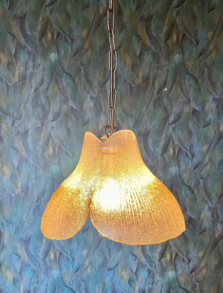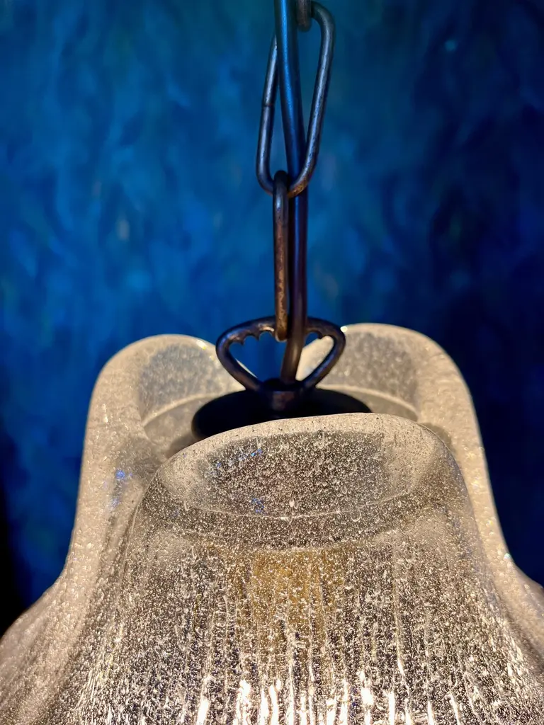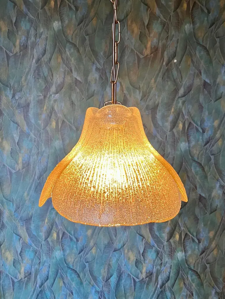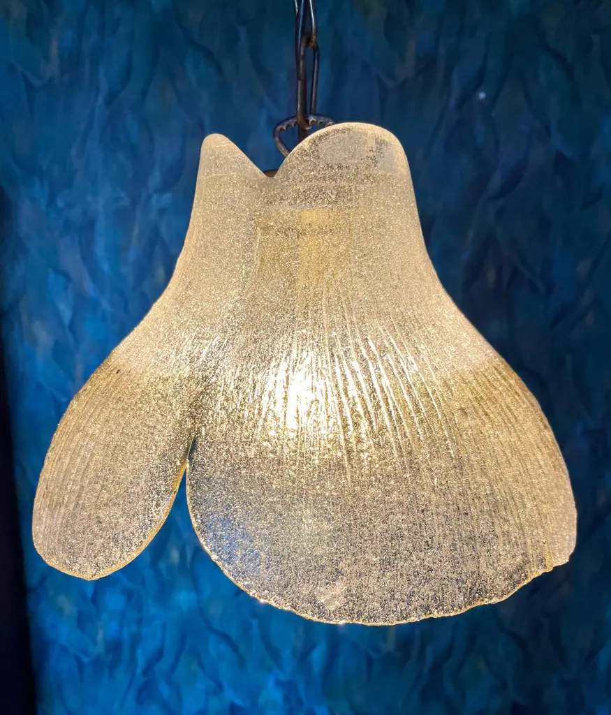 Very beautiful, large, hand-blown Murano ceiling light by Peill & Putzler.Beautiful mid-century design glass with an E27 socket for max. 40W.Total length 125cm... can be shortened.Fully functional and 100% original.It is in excellent vintage condition.Bulb not included.I only sell used items.The respective items may show more or less visible signs of wear, depending on their age.