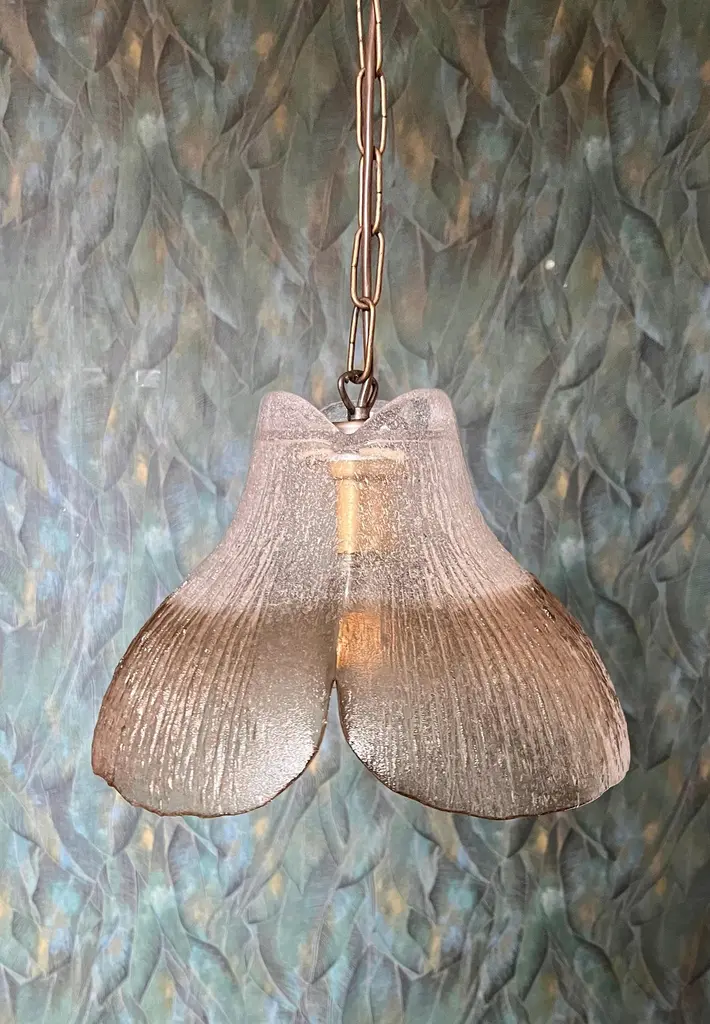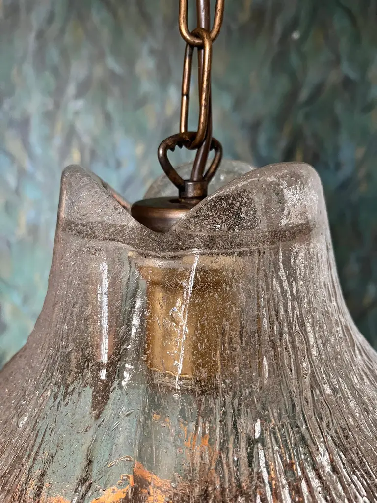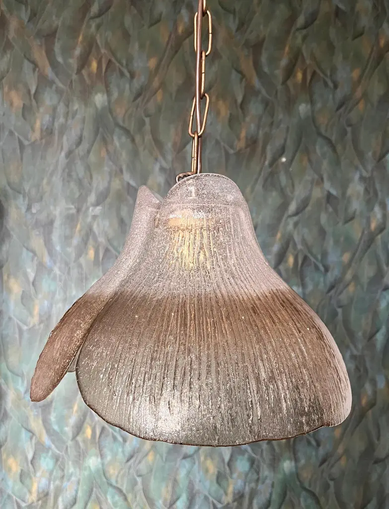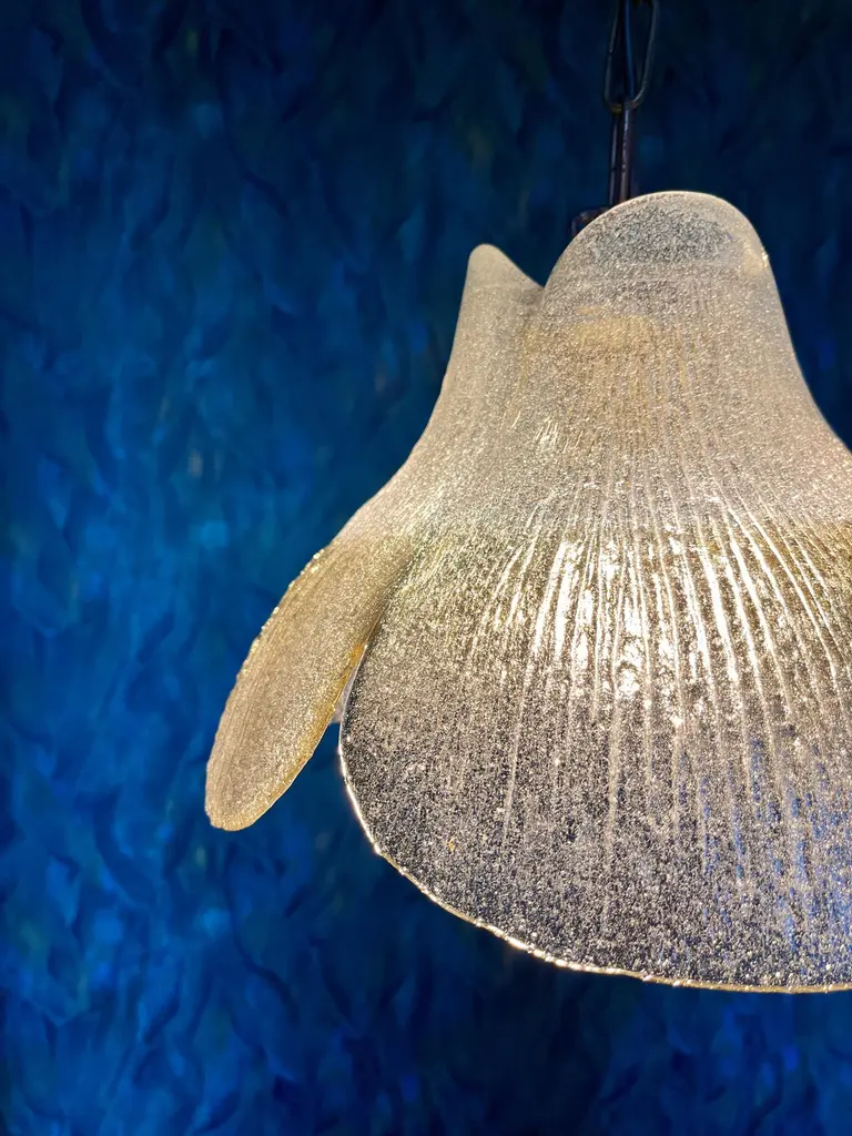 Very beautiful, large, hand-blown Murano ceiling light by Peill & Putzler.Beautiful mid-century design glass with an E27 socket for max. 40W.Total length 125cm... can be shortened.Fully functional and 100% original.It is in excellent vintage condition.Bulb not included.I only sell used items.The respective items may show more or less visible signs of wear, depending on their age.