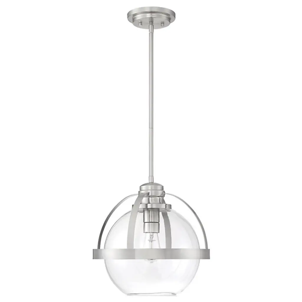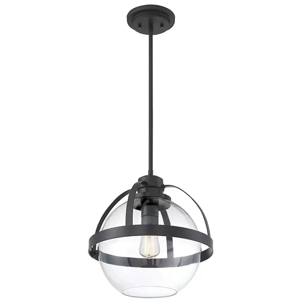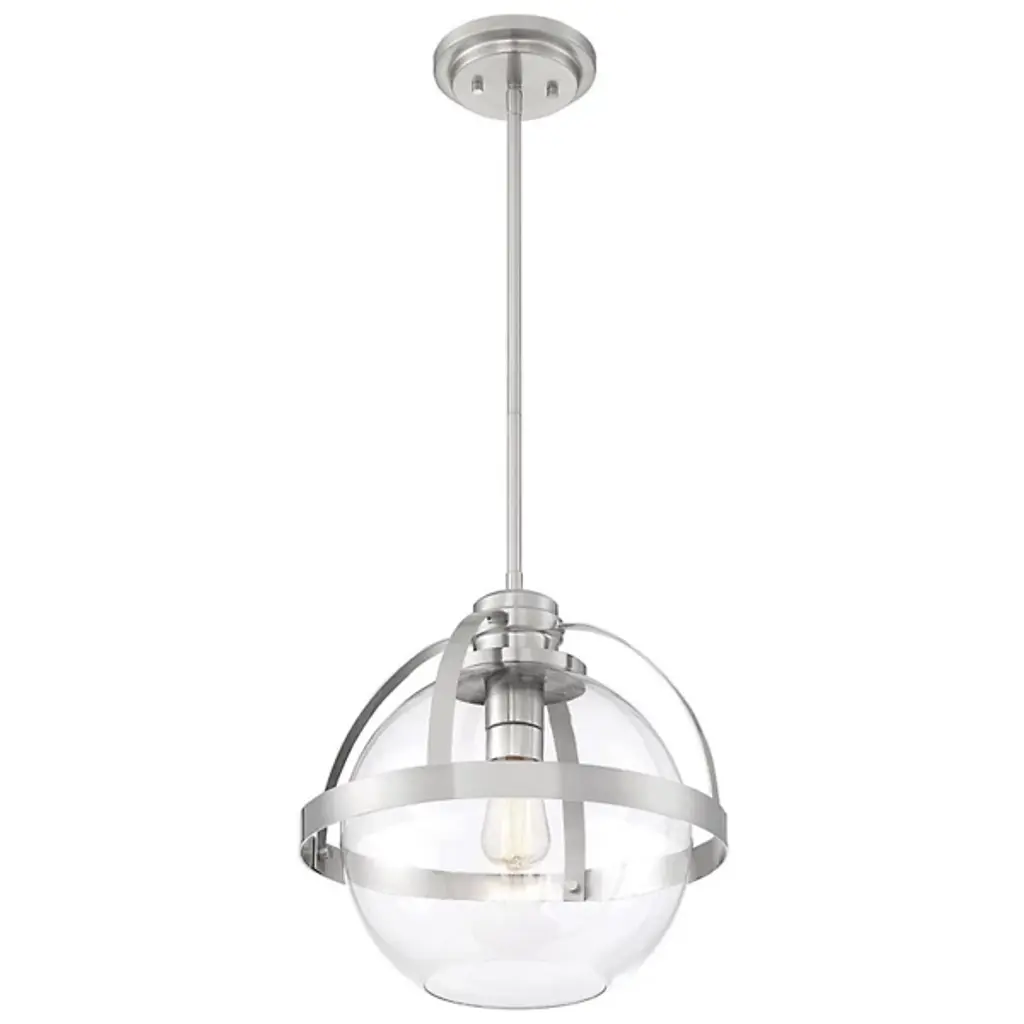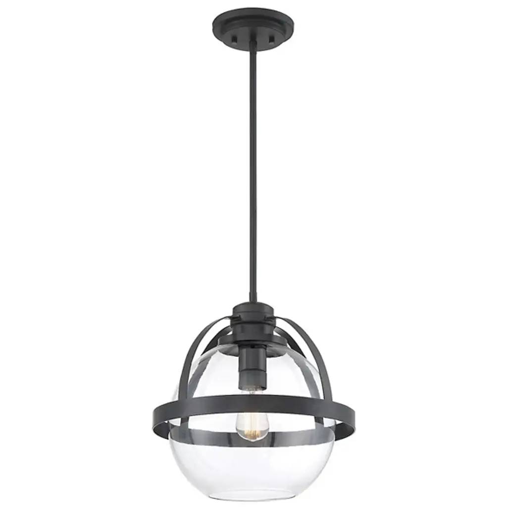 A regal design with industrial notes. The Pendleton Pendant from Savoy House makes your dining table and kitchen island an instant focal point as it suspends overhead in a multi-layered globe. A metal suspension and framework emphasize the timeless personality of the design. Metal bands drop from a central body in an elegant hemisphere, offering you a peek at the bare bulb inside. Turn it on and see as the warm notes of the bulb kiss the clear shade with elegant reflections.