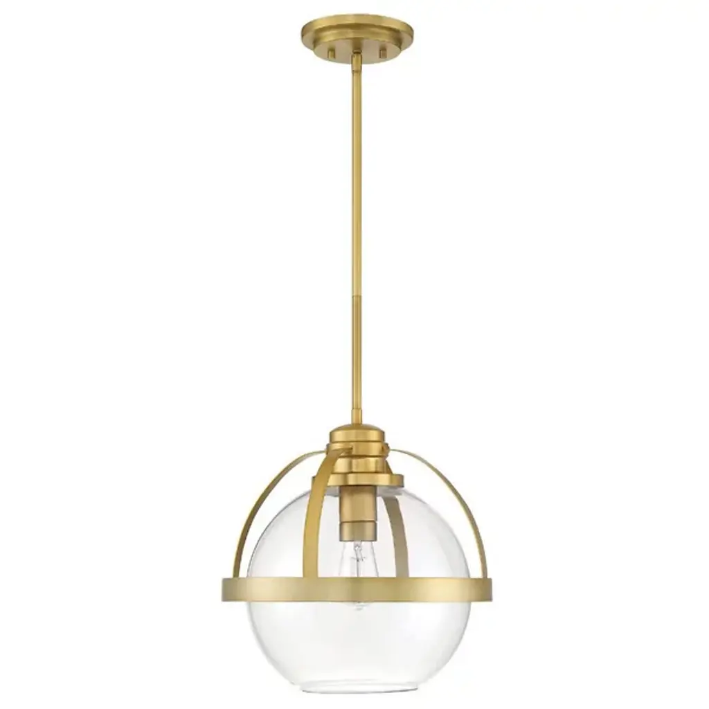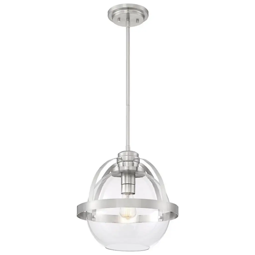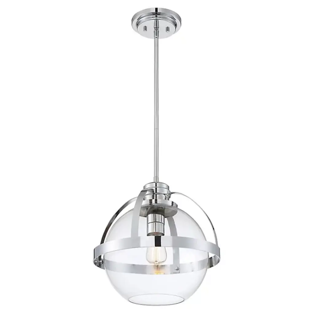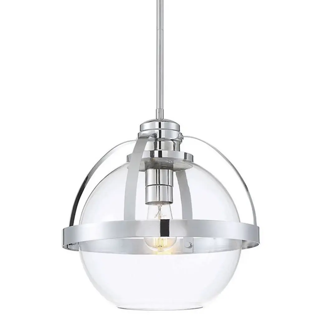 A regal design with industrial notes. The Pendleton Pendant from Savoy House makes your dining table and kitchen island an instant focal point as it suspends overhead in a multi-layered globe. A metal suspension and framework emphasize the timeless personality of the design. Metal bands drop from a central body in an elegant hemisphere, offering you a peek at the bare bulb inside. Turn it on and see as the warm notes of the bulb kiss the clear shade with elegant reflections.