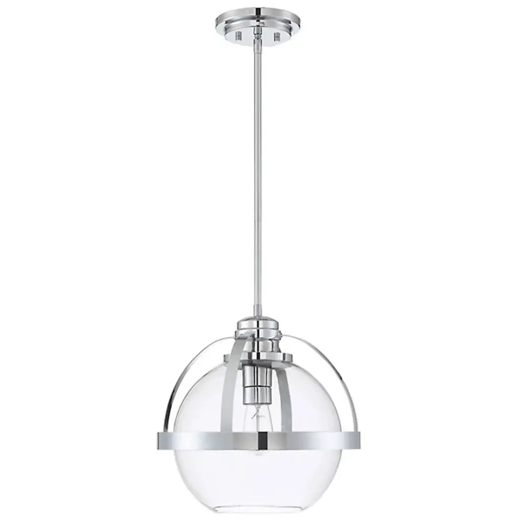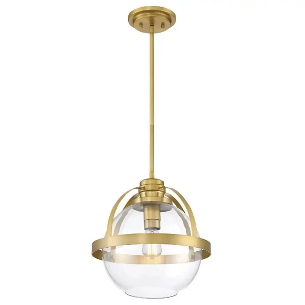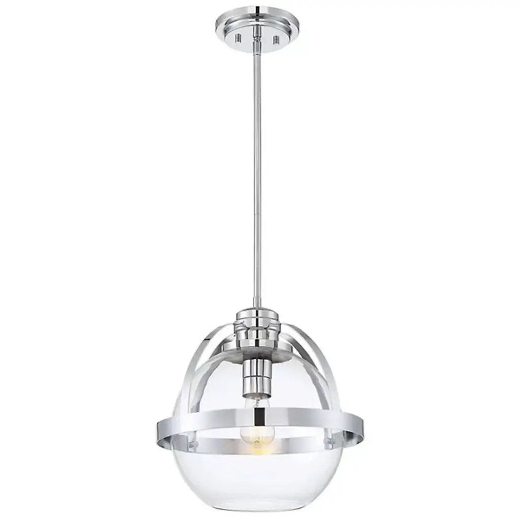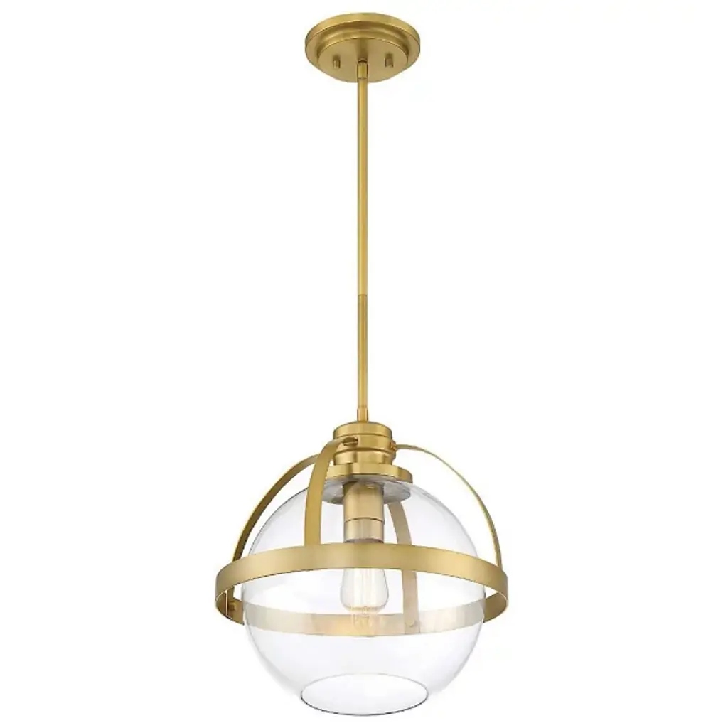 A regal design with industrial notes. The Pendleton Pendant from Savoy House makes your dining table and kitchen island an instant focal point as it suspends overhead in a multi-layered globe. A metal suspension and framework emphasize the timeless personality of the design. Metal bands drop from a central body in an elegant hemisphere, offering you a peek at the bare bulb inside. Turn it on and see as the warm notes of the bulb kiss the clear shade with elegant reflections.