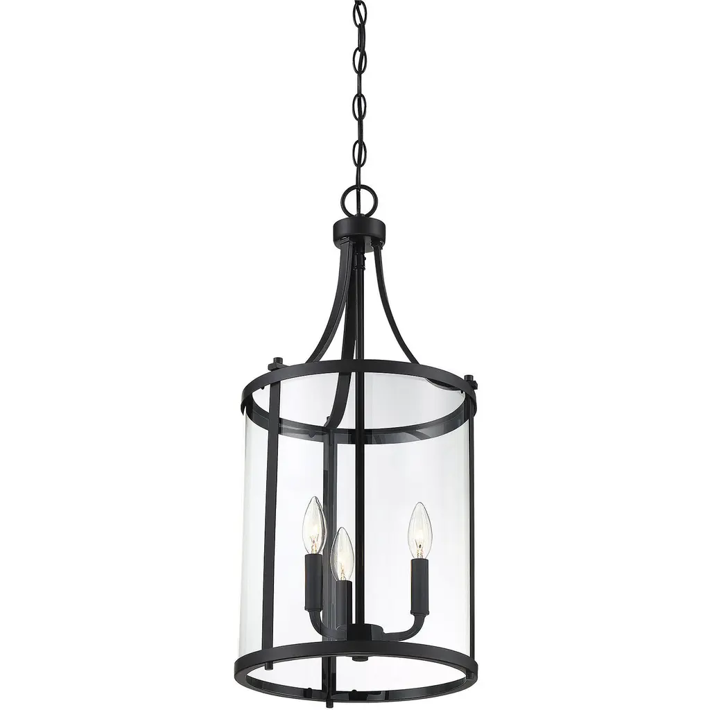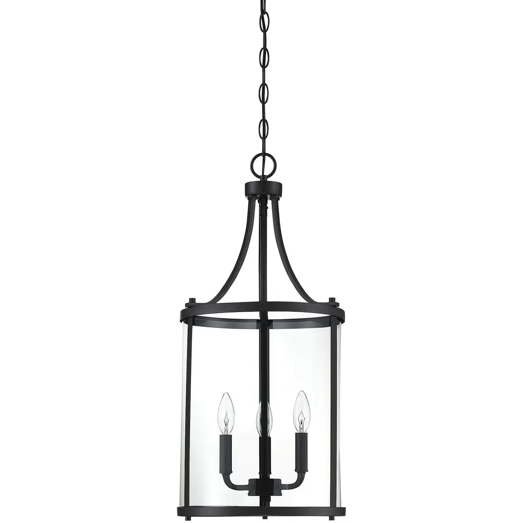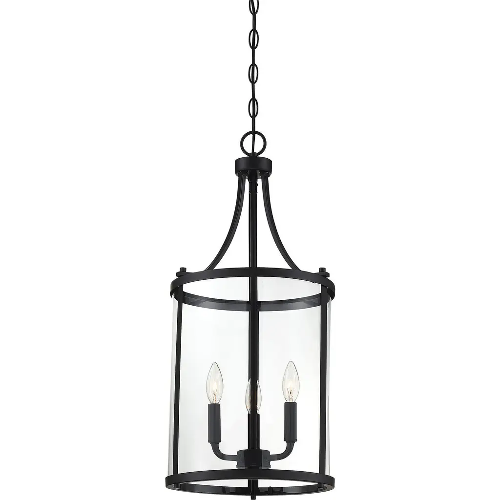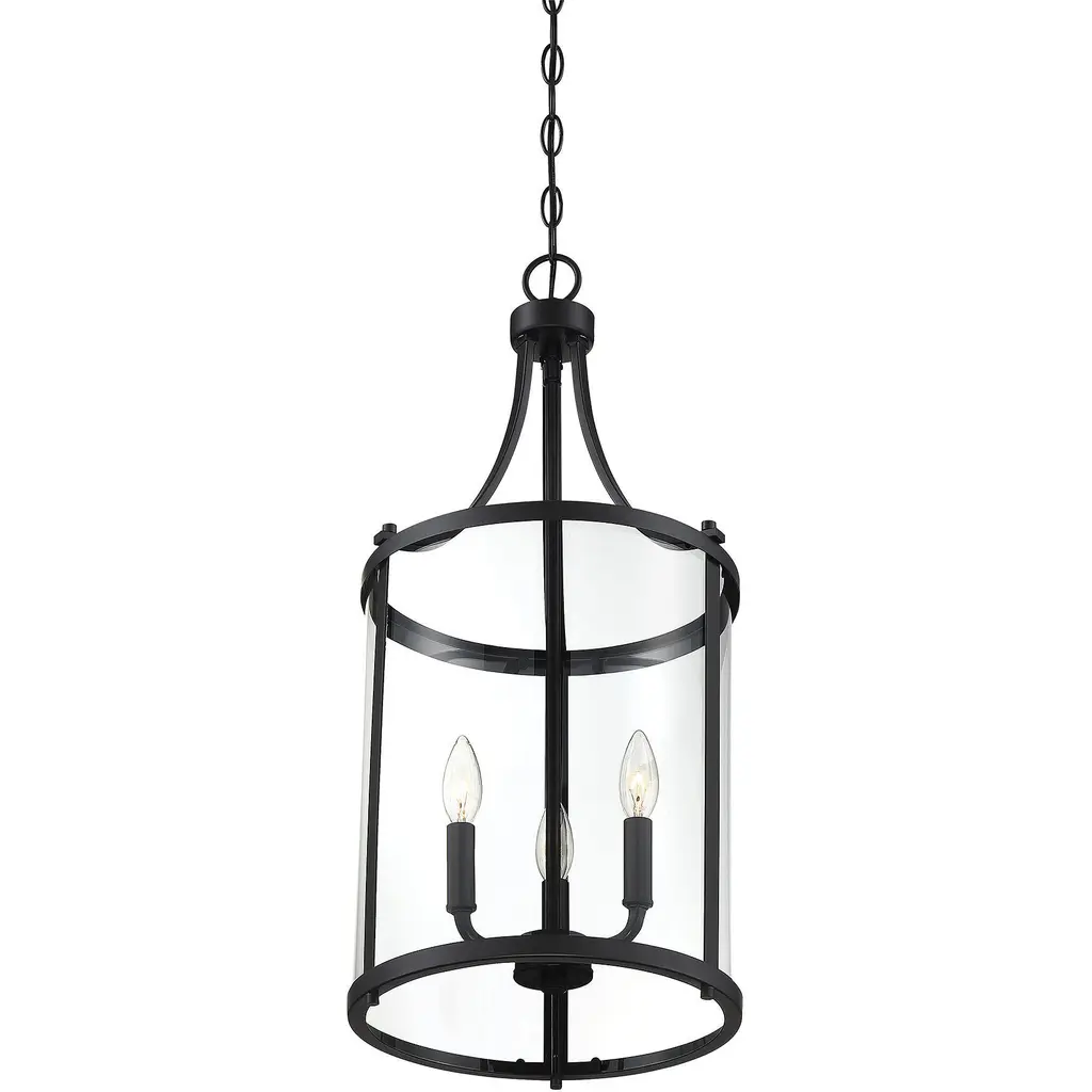 This sleek, cylindrical Penrose 3-light foyer light from Savoy House is an excellent choice for lovers of stylish modern design. It features clear glass and is finished in bold matte black. Foyer lights are often used in foyers and entryways, but can also be used in great rooms, kitchens, offices and bedrooms too Bulbs not included. Try using stylized bulbs like Edison or tubular bulbs for a different look The matte black finish can be matched with black hardware or mixed with hardware in other finishes. Bring Penrose into rooms of any style, especially transitional or classic, for a big touch of lighting allure. When you choose a Savoy House lighting fixture, you can be certain you've selected a piece that will withstand the test of time.