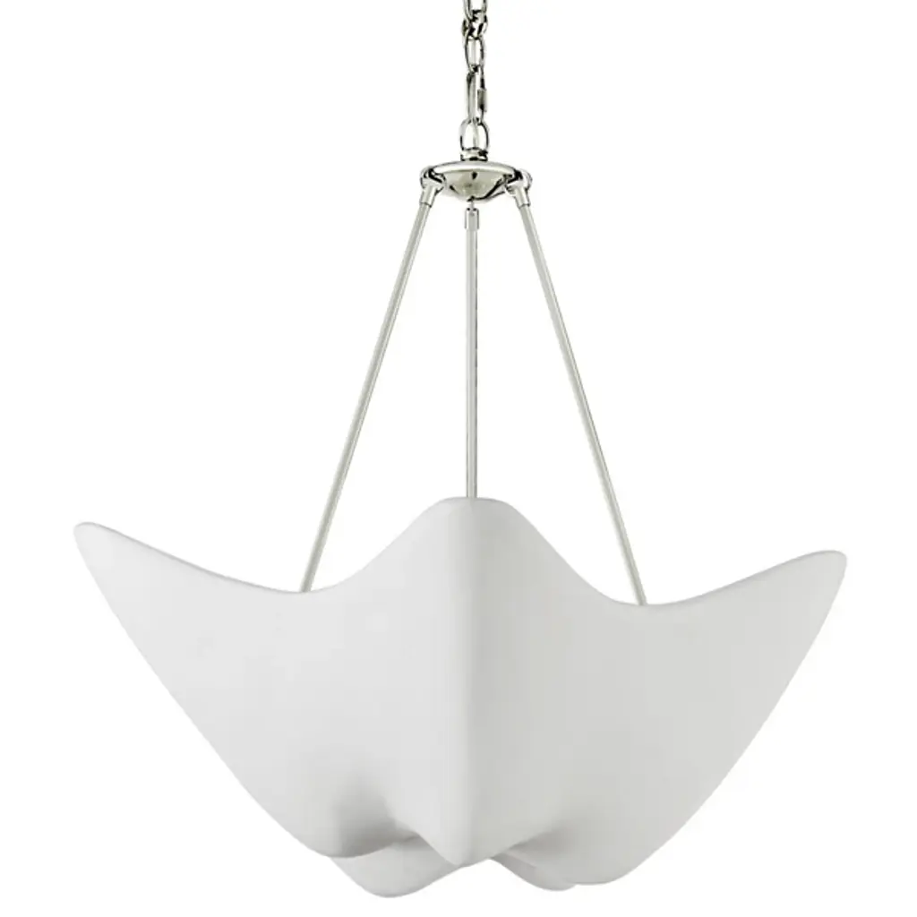 Make waves in any room with the three-light Van Teal Peony Pendant in a soft Pink Splendor hue. This minimalist chandelier maintains a clean, modern flow that's slightly softened by the rippling design of the shade. The sleek, sturdy frame is finished in gleaming chrome to top off your décor with a hint of polished sophistication. This Pendant requires (3) 100 Watt Incandescent or 16 Watt LED equivalent bulb (not included). Comes with a one year limited manufacturer's warranty.