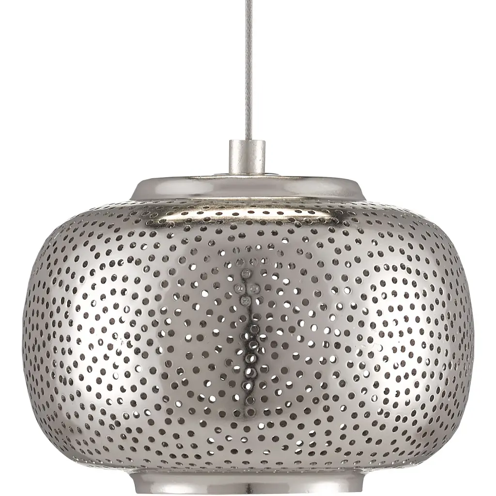 Our Pepper 1-Light Multi-Drop Pendant has a pierced metal shade in a mix of painted silver and nickel finishes. The textural metal orb is on point for modern farmhouse and industrial chic interiors. This fixture is among Currey & Company’s introduction of cluster lights, which includes 1-light up to 36-light configurations.