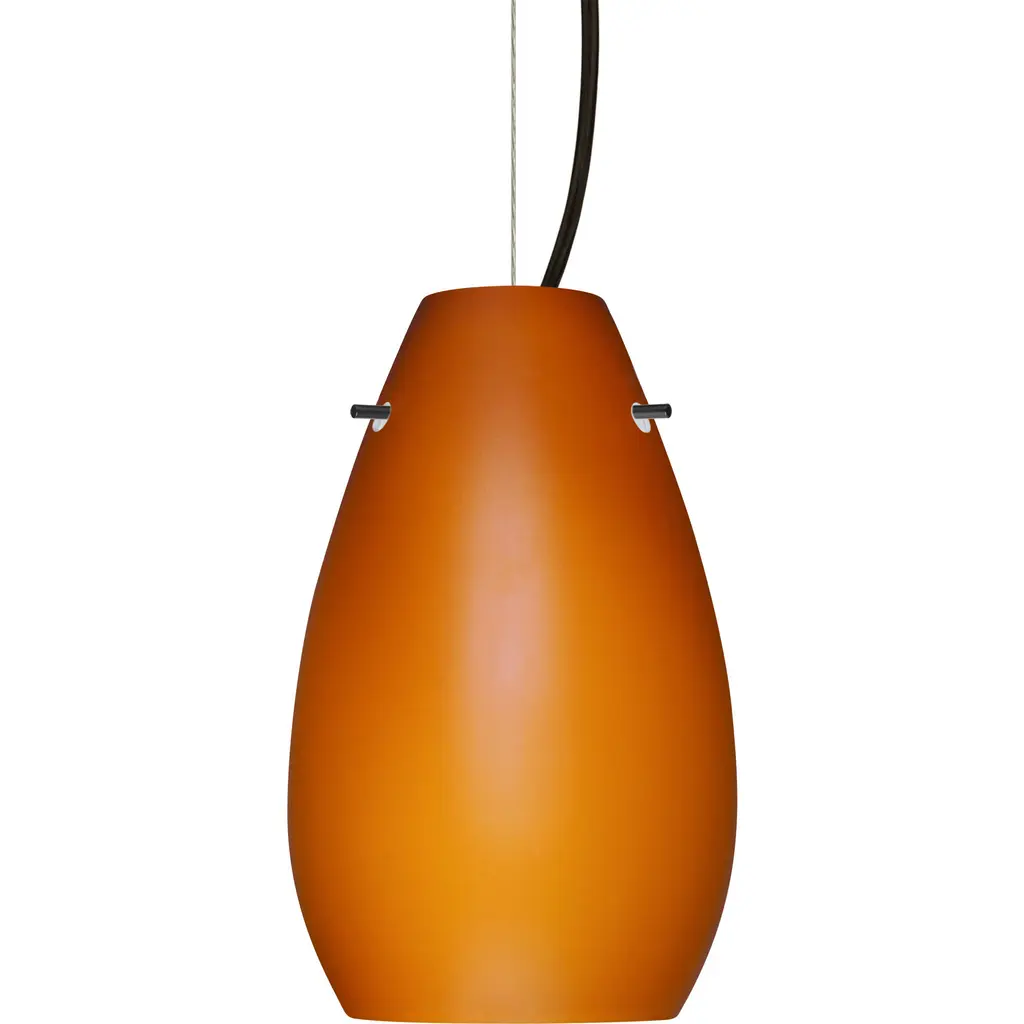 The Pera 9 is a curvy bell-bottomed shape, that fits nicely into any contemporary design. Our Habanero glass is a warm toned cased glass, with inner opal and a glossy finish. The color of vibrant Persimmon is accented by flowing marbleized black lines, and nestled between the inner opal and outer clear layers. When lit the glass is vitalizing as well as stylish, that adds appeal to any environment. This blown glass is handcrafted by a skilled artisan, utilizing century-old techniques passed down from generation to generation. Each piece of this décor has its own artistic nature that can be individually appreciated. The cord pendant fixture is equipped with a 10' SVT cordset and a low profile flat monopoint canopy. These stylish and functional luminaries are offered in a beautiful Black finish.