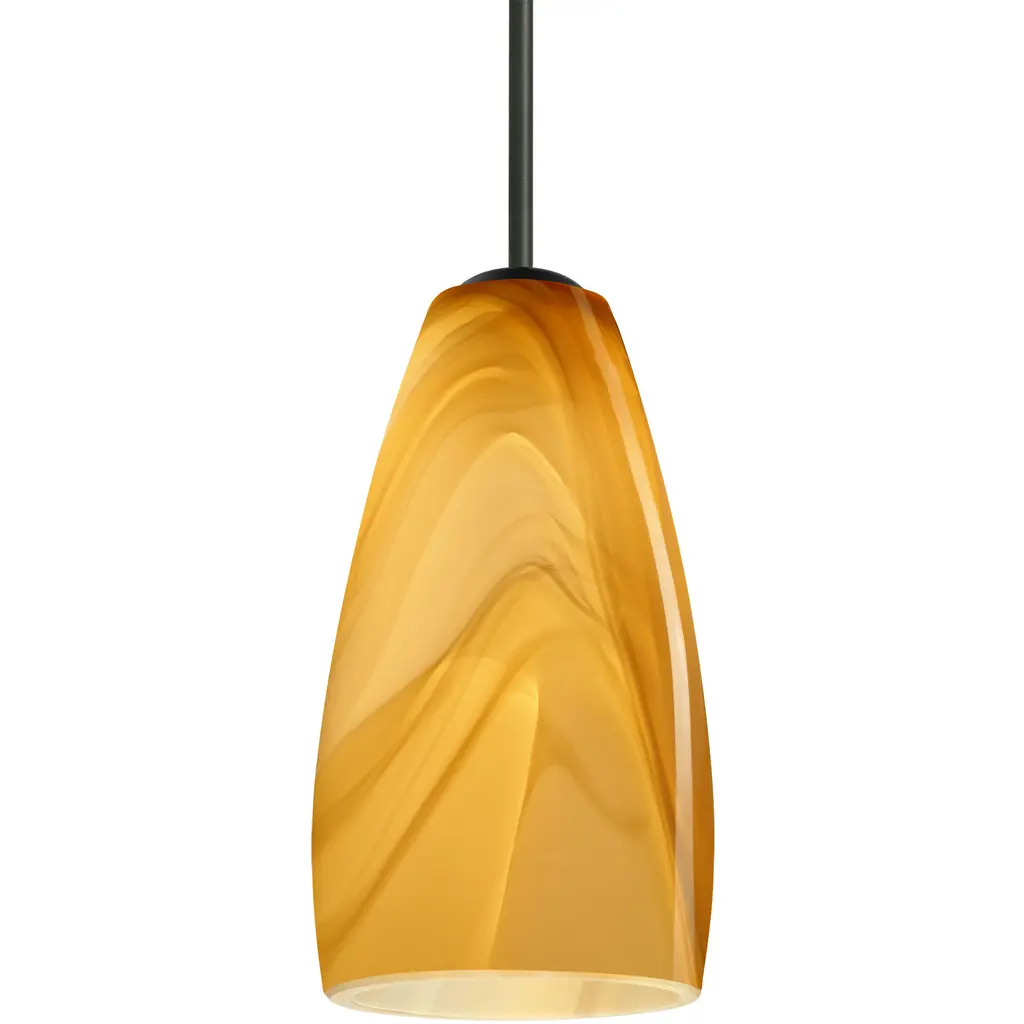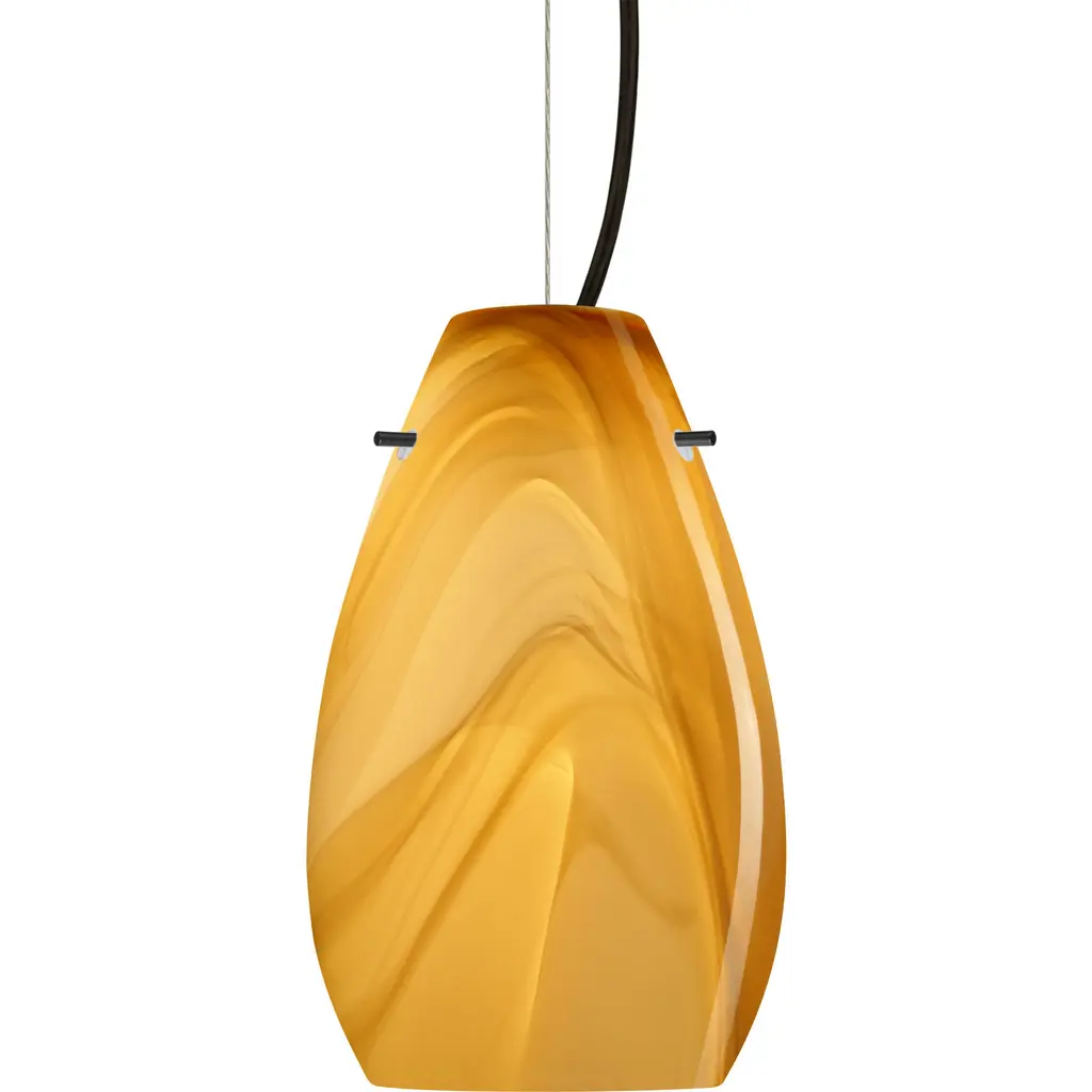 The Pera 9 is a curvy bell-bottomed shape, that fits nicely into any contemporary design. This unique décor is handcrafted, with layered swirls of yellow-amber and golden-brown against white, finished to a high gloss. Its classic swirl pattern and high gloss surface has a truly florid gleam. Honey is a hand-blown glass designed to have a shiny and polished finish. The glass is gathered and rolled into shape a unique pattern is formed that cannot be replicated. This blown glass is handcrafted by a skilled artisan, utilizing century-old techniques passed down from generation to generation. Each piece of this décor has its own unique artistic nature that can be individually appreciated. The cord pendant fixture is equipped with a 10' SVT cordset and a low profile flat monopoint canopy. These stylish and functional luminaries are offered in a beautiful Black finish.