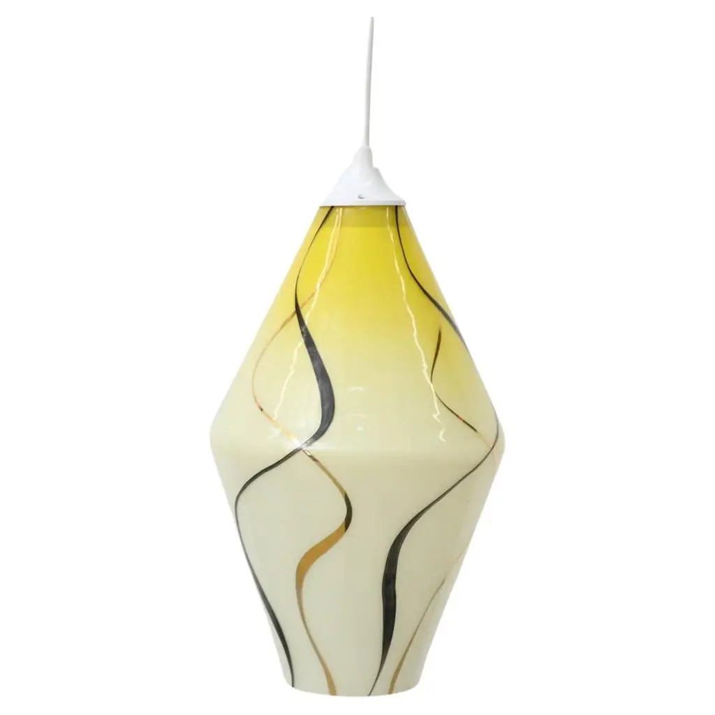 The Pera 9 is a curvy bell-bottomed shape, that fits nicely into any contemporary design. This unique décor is handcrafted, with layered swirls of yellow-amber and golden-brown against white, finished to a high gloss. Its classic swirl pattern and high gloss surface has a truly florid gleam. Honey is a hand-blown glass designed to have a shiny and polished finish. The glass is gathered and rolled into shape a unique pattern is formed that cannot be replicated. This blown glass is handcrafted by a skilled artisan, utilizing century-old techniques passed down from generation to generation. Each piece of this décor has its own unique artistic nature that can be individually appreciated. The cable pendant fixture is equipped with a 10' silver aircraft cable and AWM cordset, and a dome monopoint canopy. These stylish and functional luminaries are offered in a beautiful Black finish.