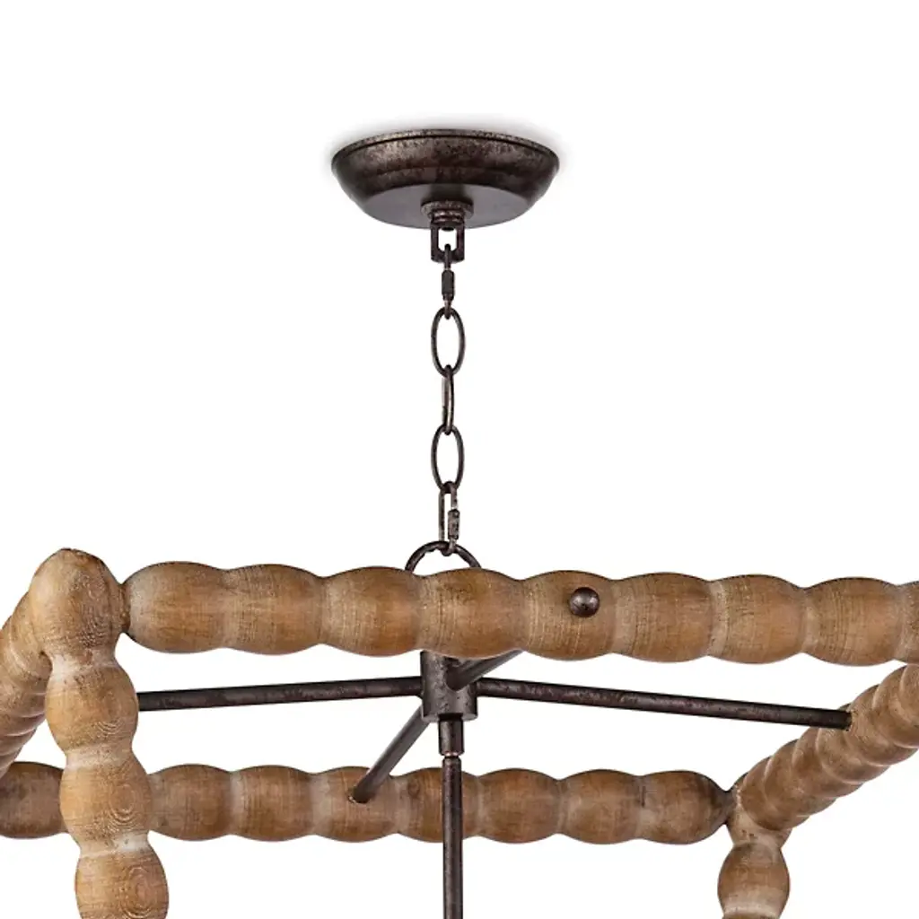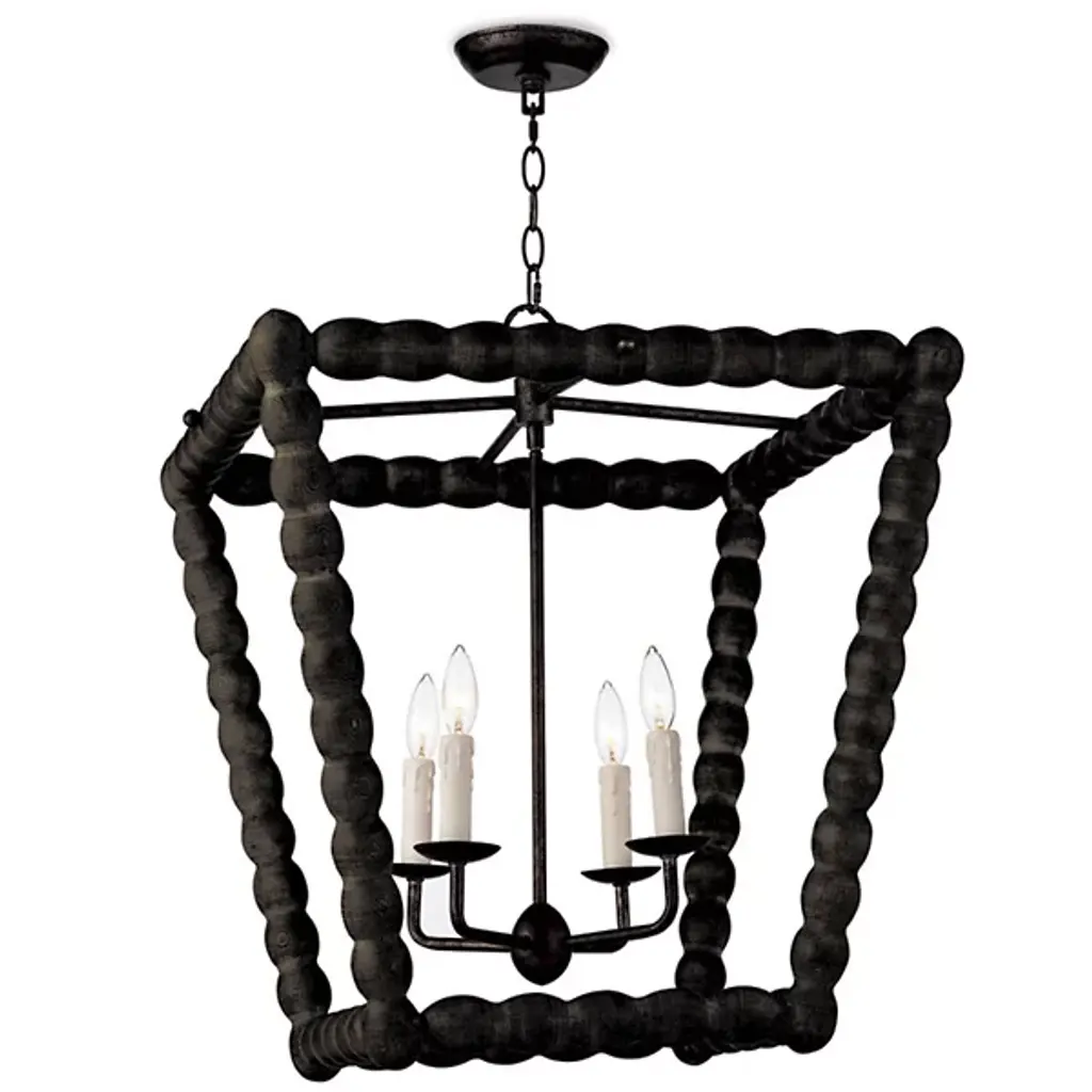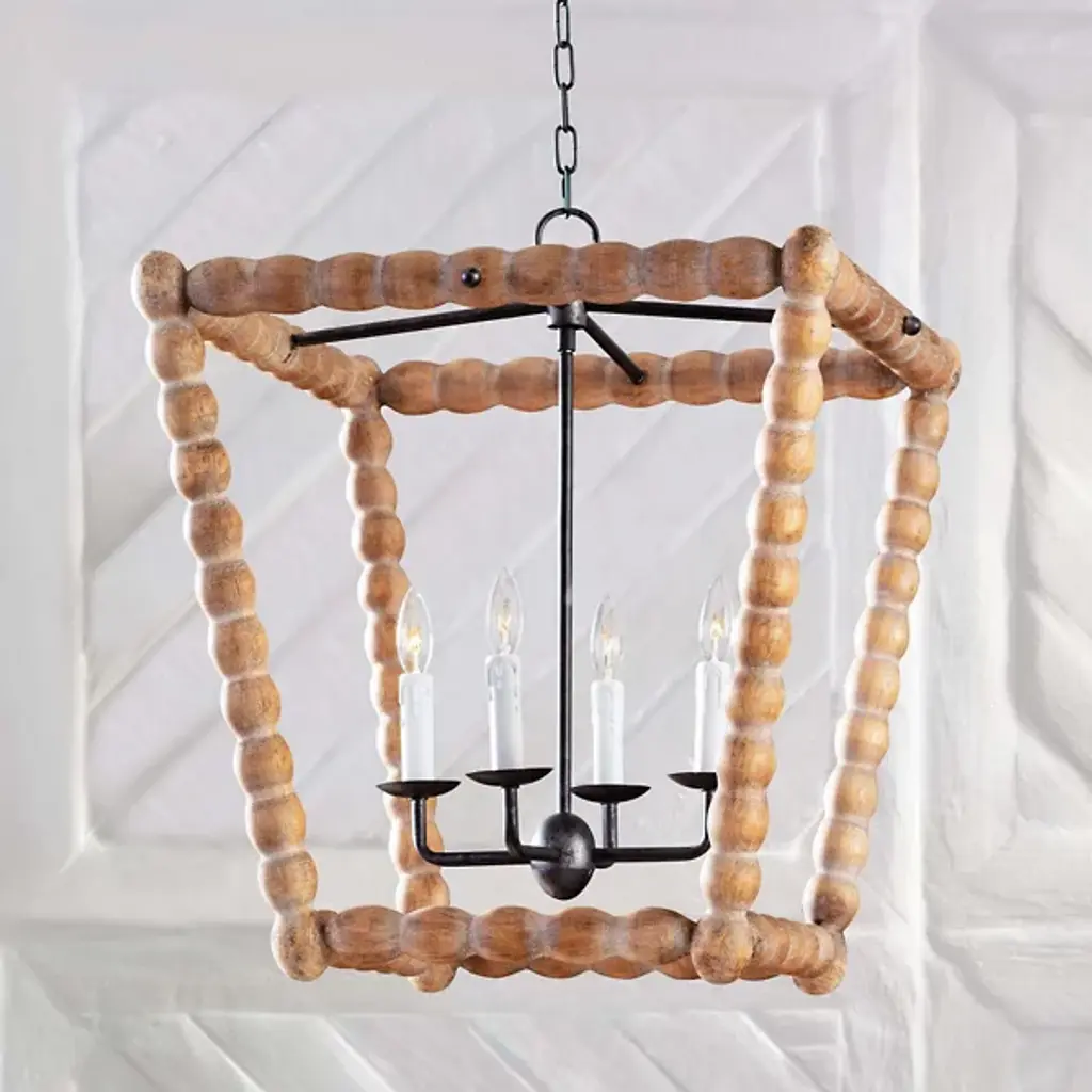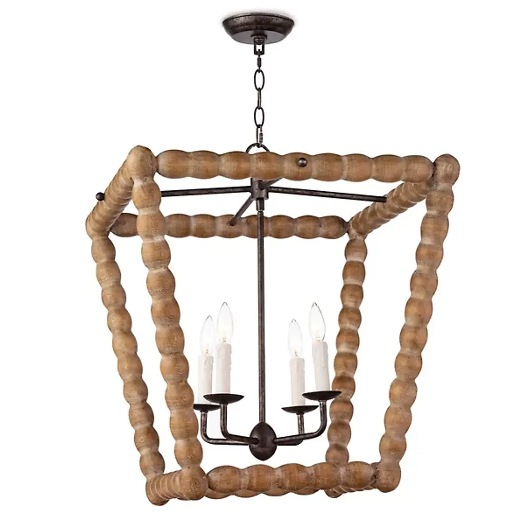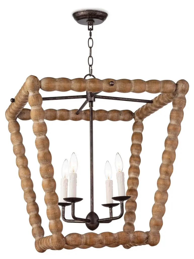 Bring a rustic farmhouse charm to your home décor with the help of the Perennial Pendant by Regina Andrew. Featuring a refreshing take on a classic lantern silhouette, this fixture is comprised of a textural geometric frame hand lathed from solid wood to create a beaded style. Its inner lamping is set on slender candleholders with faux wax dripping for a more traditional touch that harmonizes beautifully with its unique metal framework.