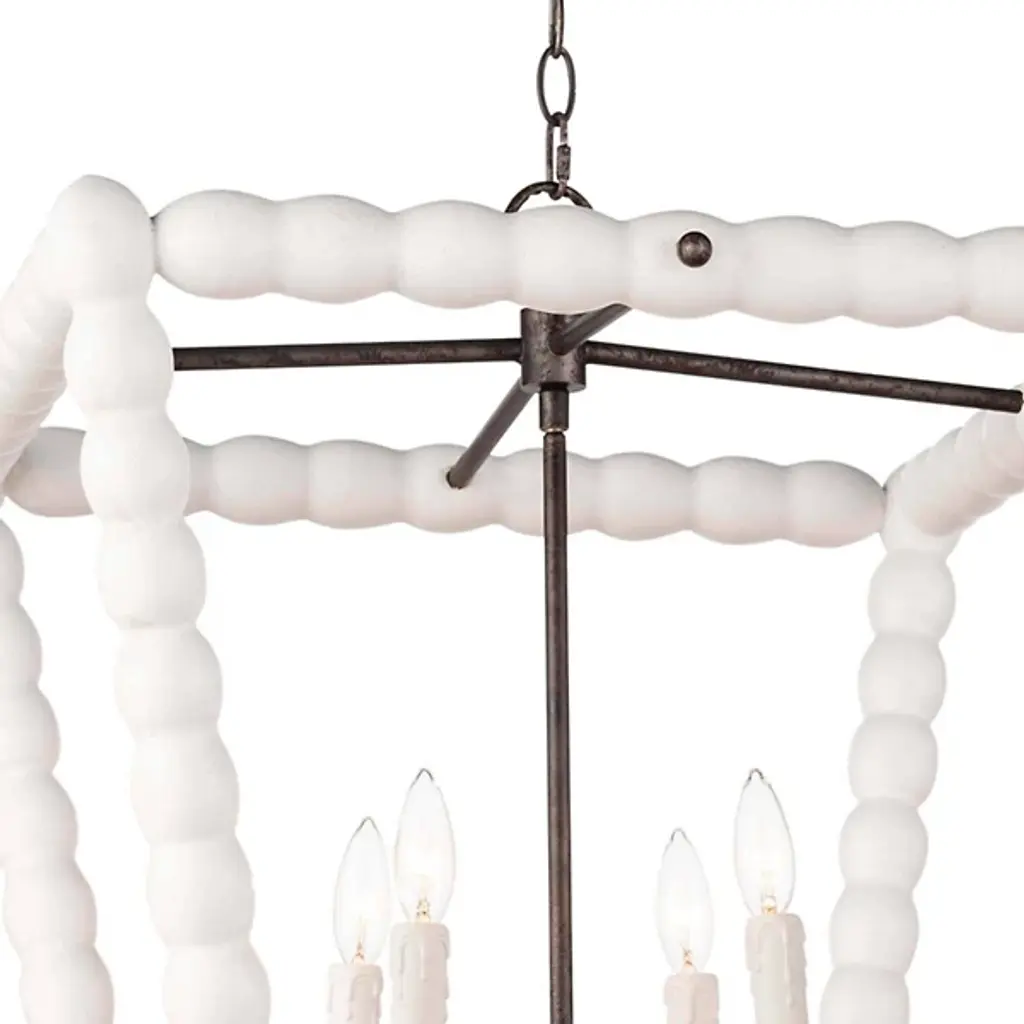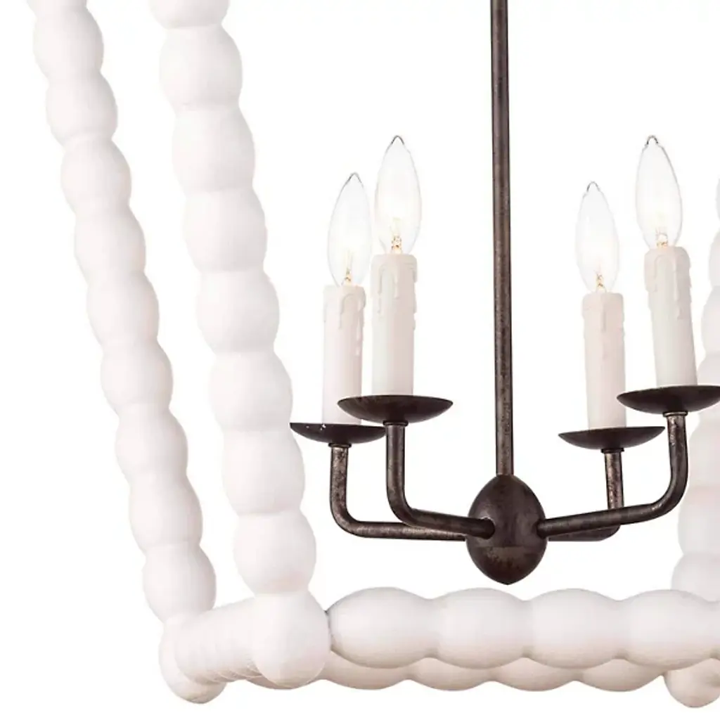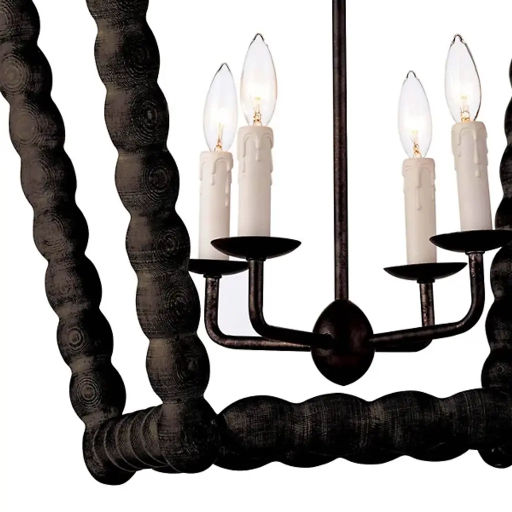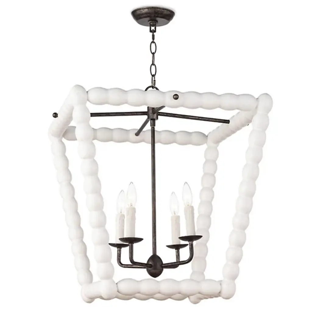 Bring a rustic farmhouse charm to your home décor with the help of the Perennial Pendant by Regina Andrew. Featuring a refreshing take on a classic lantern silhouette, this fixture is comprised of a textural geometric frame hand lathed from solid wood to create a beaded style. Its inner lamping is set on slender candleholders with faux wax dripping for a more traditional touch that harmonizes beautifully with its unique metal framework.