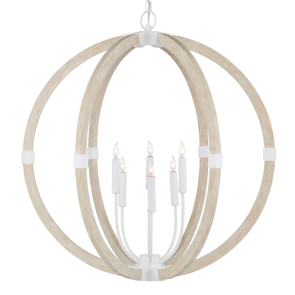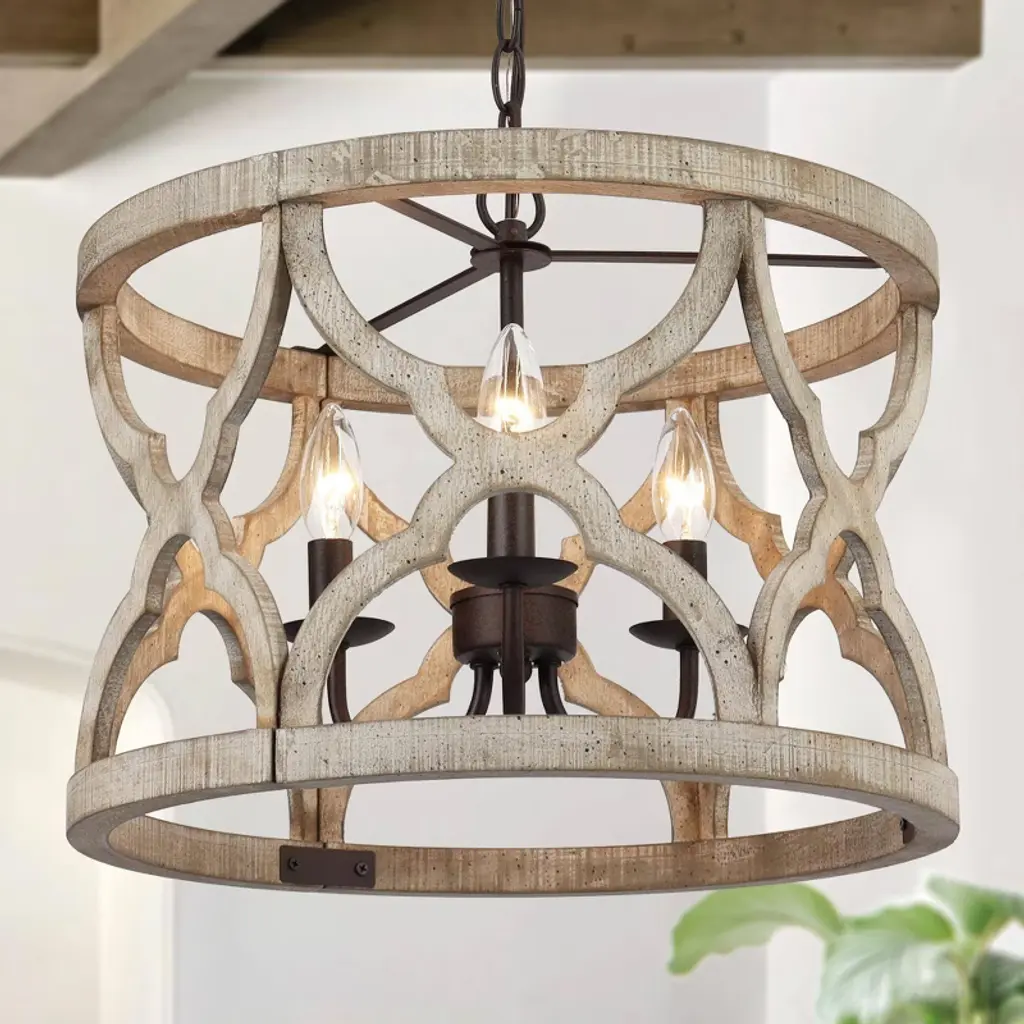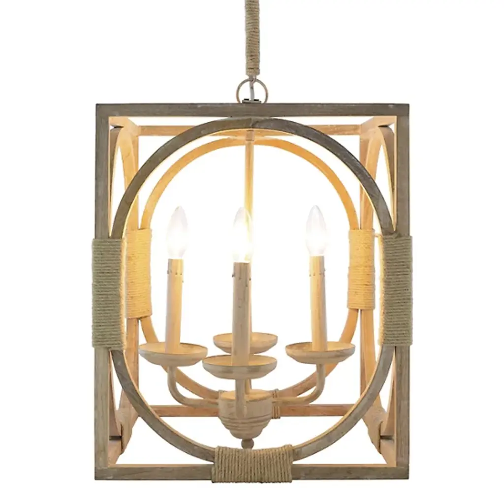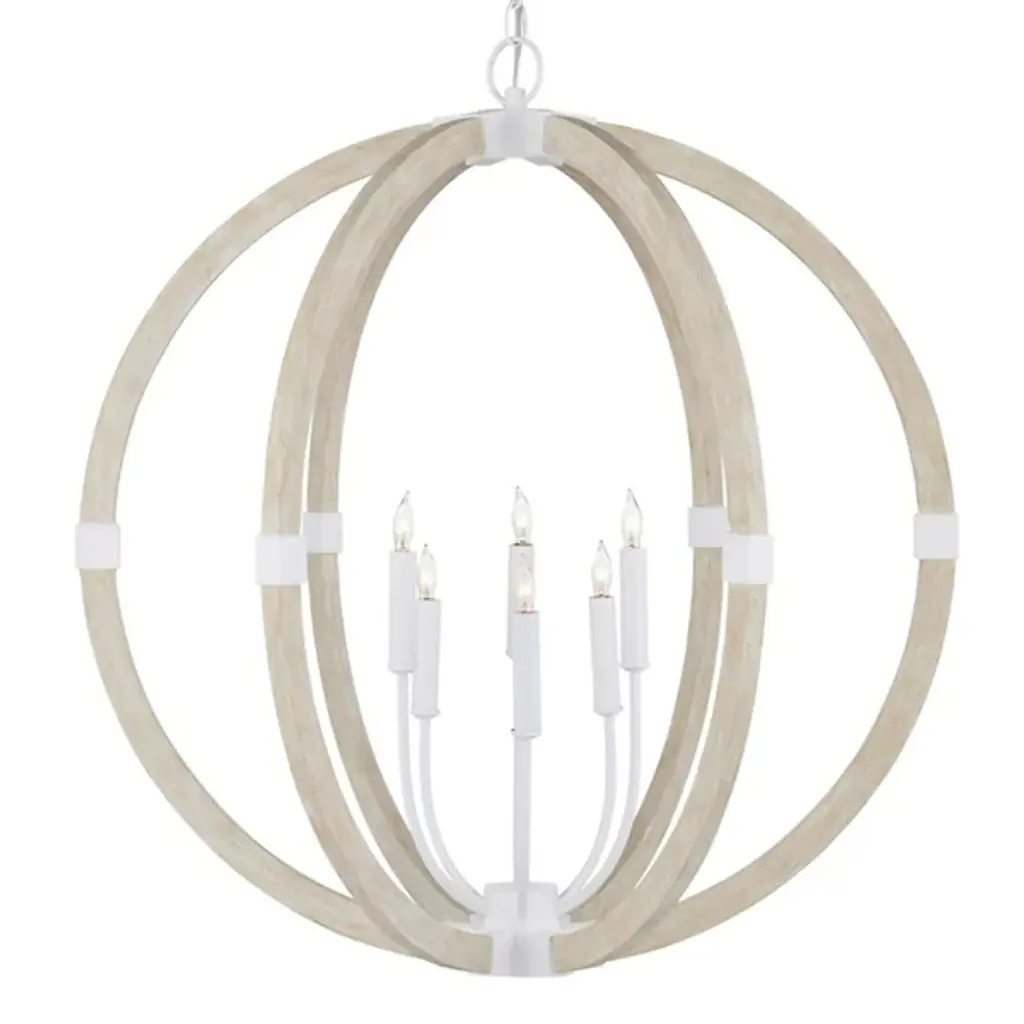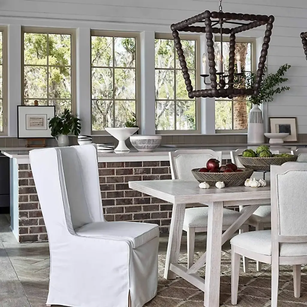 Bring a rustic farmhouse charm to your home décor with the help of the Perennial Pendant by Regina Andrew. Featuring a refreshing take on a classic lantern silhouette, this fixture is comprised of a textural geometric frame hand lathed from solid wood to create a beaded style. Its inner lamping is set on slender candleholders with faux wax dripping for a more traditional touch that harmonizes beautifully with its unique metal framework.