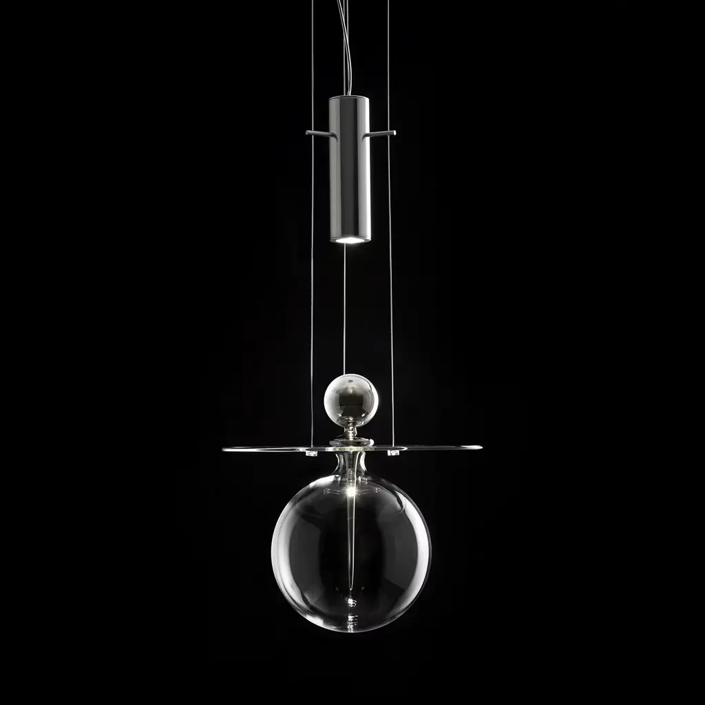 Inspired by traditional perfume bottle design, the Perfume Sphere Pendant Light dazzles with its unique shape. Perfect for glamorous walk-in closets, or any other area dedicated to beauty, the pendant is handcrafted in blown glass. Cap available in transparent, frosted, platinum or gold. Light source: 3W LED 2800 K.