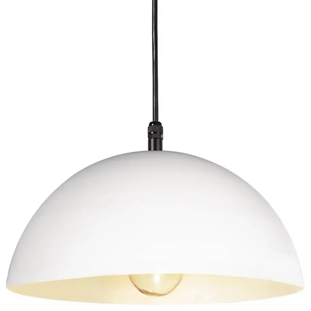 The Peridot Outdoor Pendant by Regina Andrew is a cool, contemporary addition to spaces. Simply suspended from a cord, a smoothly shaped, metal dome shade with a lovely finish creates a clean silhouette and offers a minimally styled look to the areas it brightens, both indoors and out. A single light source within offers plenty of light that is evenly shaped down onto surroundings to create a warm, welcoming environment.