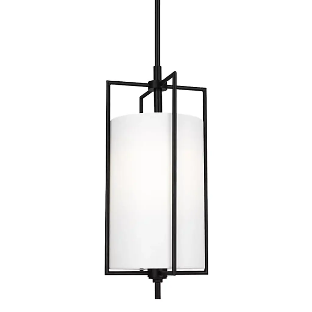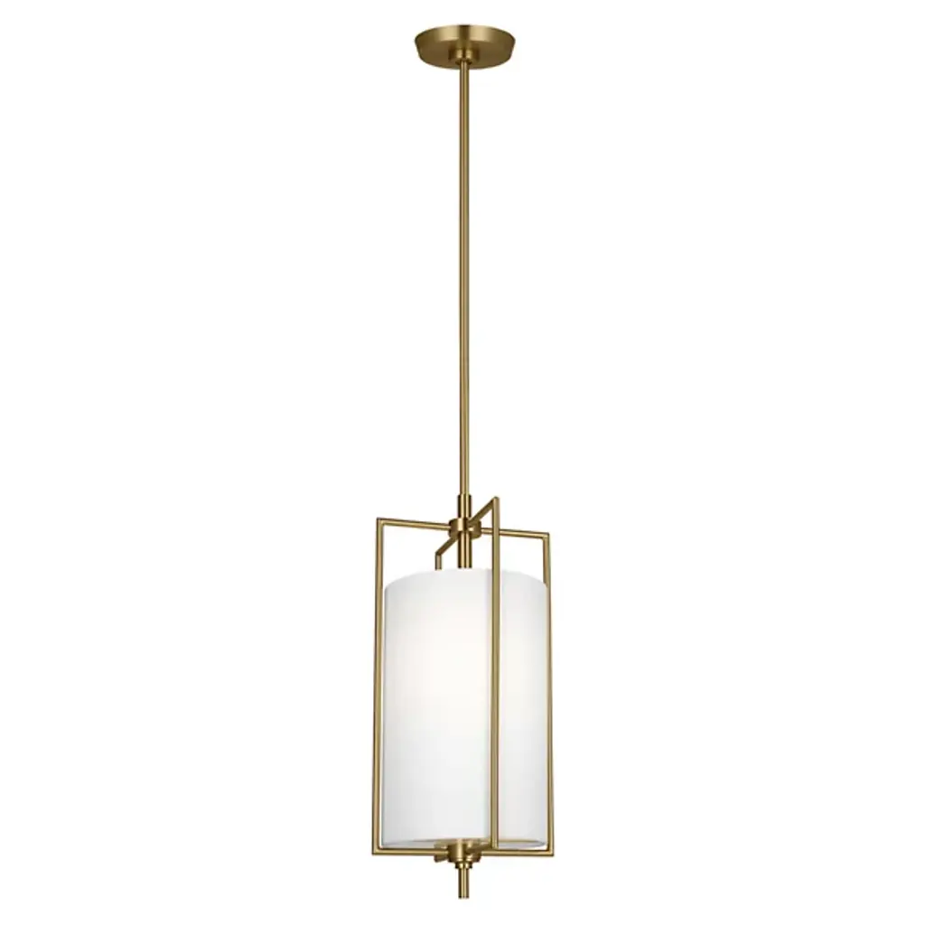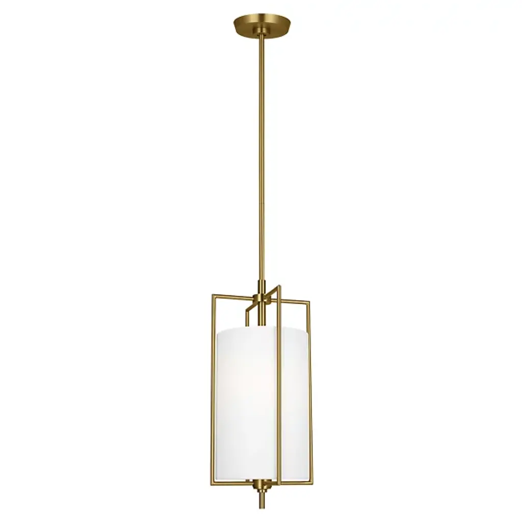 The Perno Pendant by Chapman and Myers was inspired by a vintage mid-century French sconce with a simple metal armature. The minimal cruciform structure of the metal frame is the main feature of the design. The frame outlines and supports the inner cylindrical shade. All of the assembly hardware for installing the inner shade was engineered to be hidden in order to maintain the clean and simple aesthetic of the light.