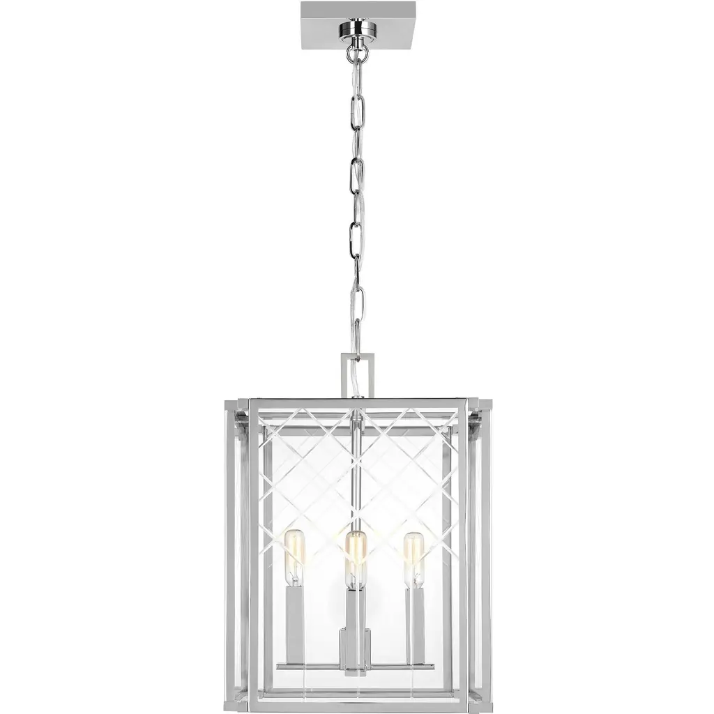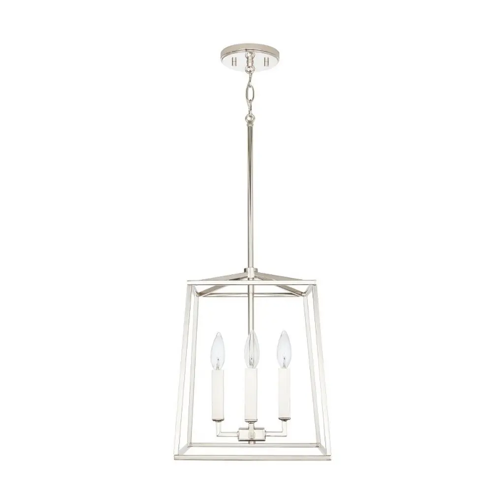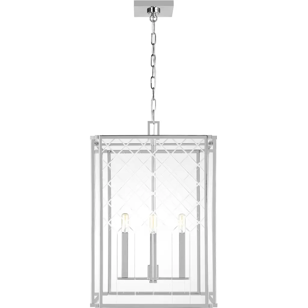 The Perryton four light indoor pendant in chrome enhances the beauty of your home with ample light and style to match today's trends. Inspired by stately carriage lanterns, Perryton features an updated open frame with sleek square steel tubing