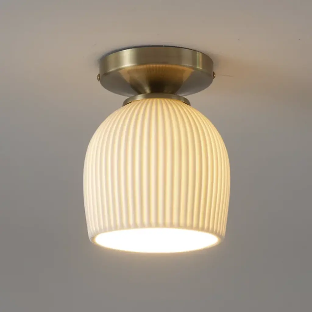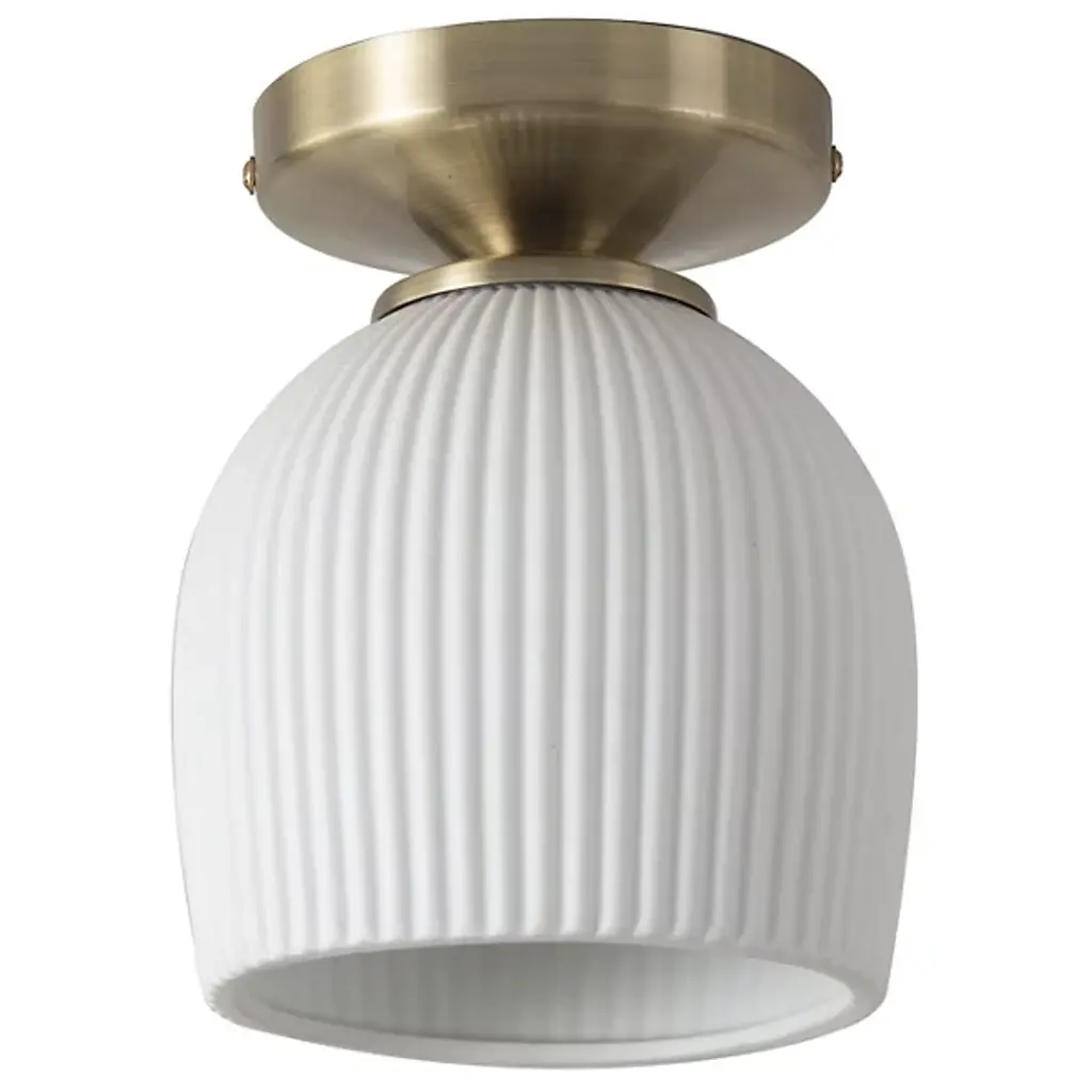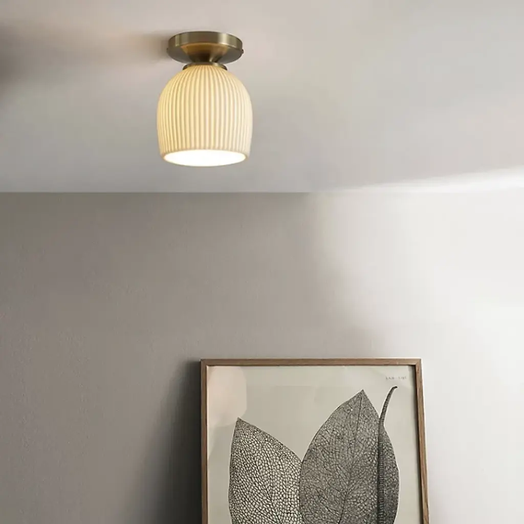 The Petaluma Semi-Flushmount from Nova of California is a contemporary light fixture that adds elegance to your room. This semi-flushmount features a beautifully curved shade with a ribbed design, providing a textured and sophisticated look. Secured by a durable steel ceiling canopy, it’s complemented by bone porcelain that showcases quality and refinement. Illuminated by a brilliant LED, this fixture offers efficient and long-lasting brightness, making it suitable for various settings