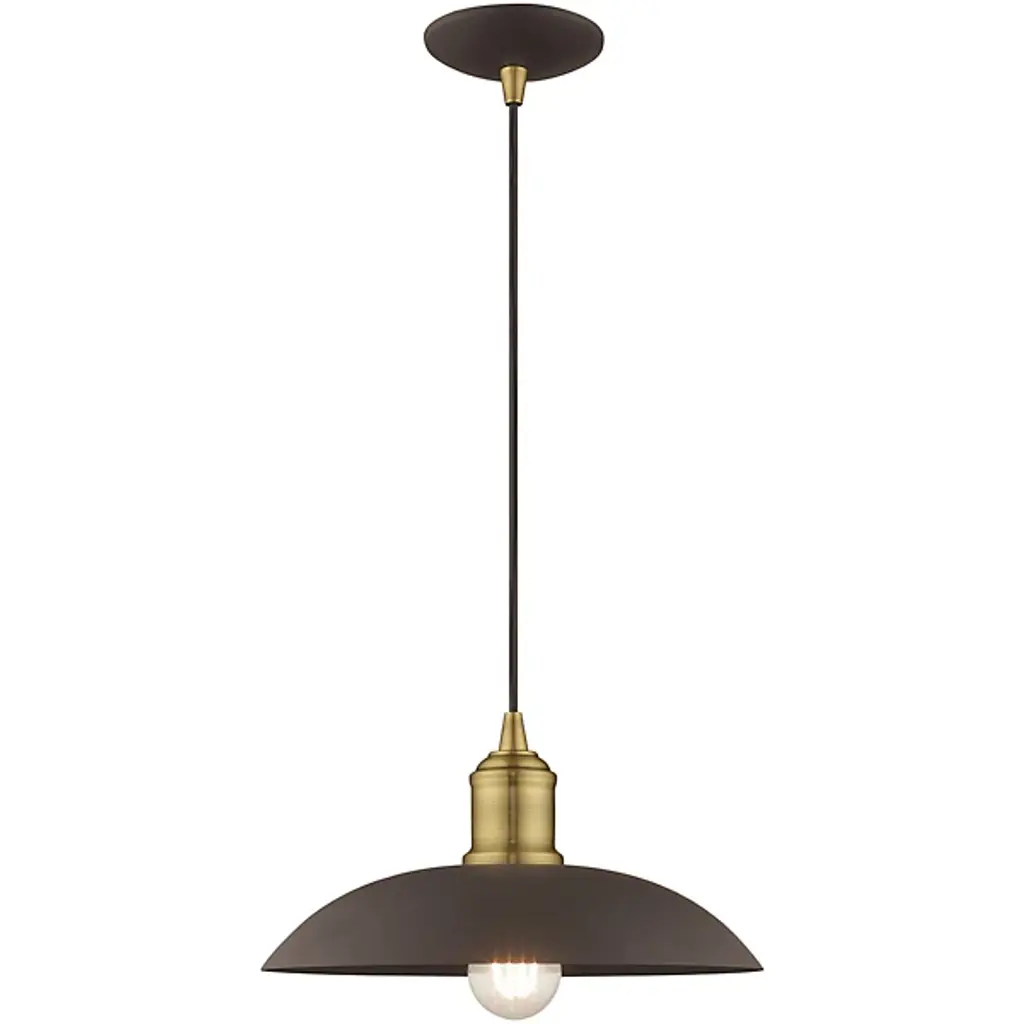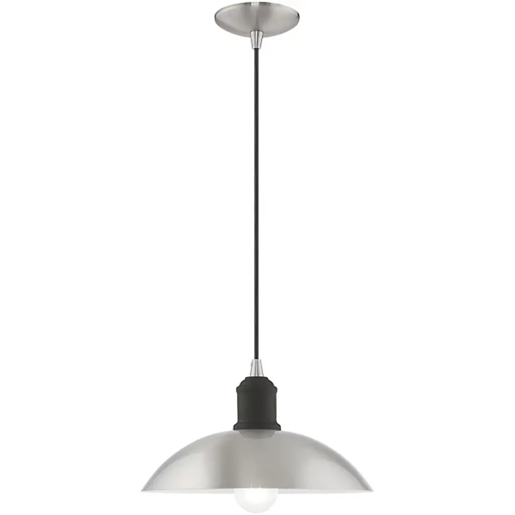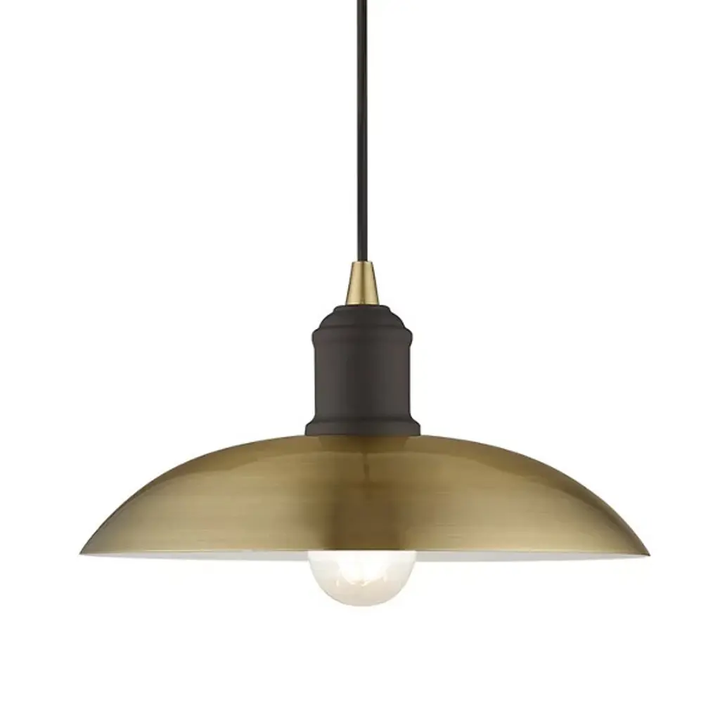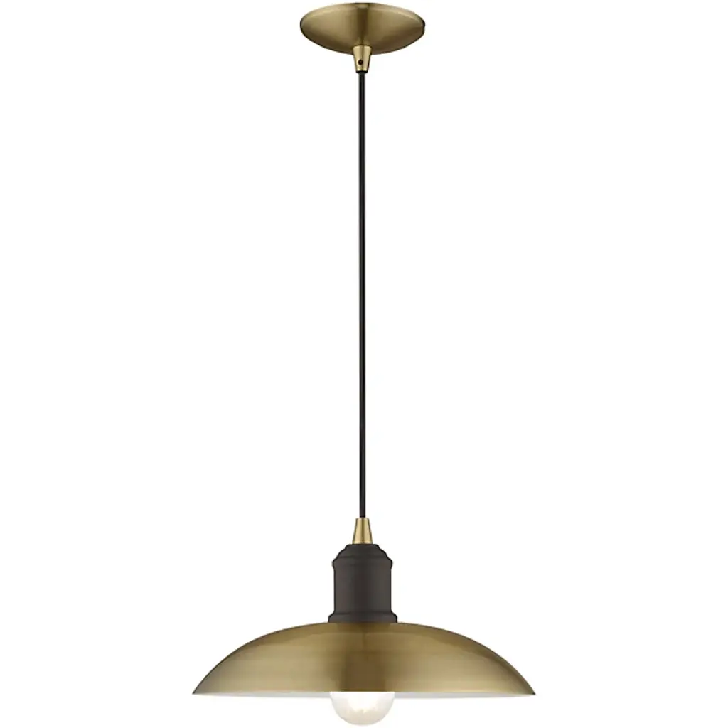 Smooth, elegant, and retro-styled, the Peterson Metallic Pendant from Alder & Ore dishes out an even wash of calming illumination. This throwback modern piece brings a refined silhouette ideal over a kitchen island or a dining table. It descends from a compact canopy with a slim cable. Below, the contoured barrel secures downward-facing lamping at the center of a steel bowl shade. This open arrangement leaves the lamping partially exposed for a charming highlight. The light shines outward while reflecting a warm ambiance down around the fixture.