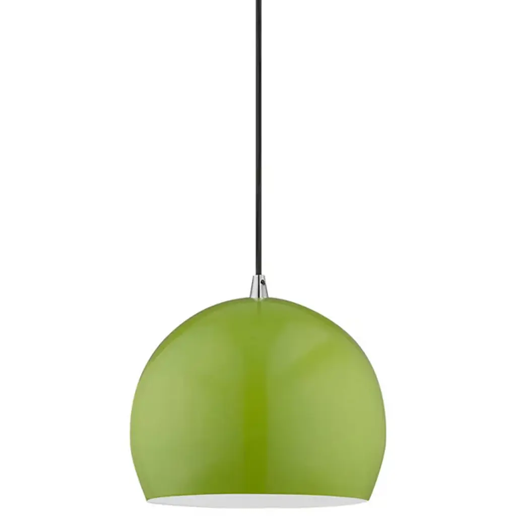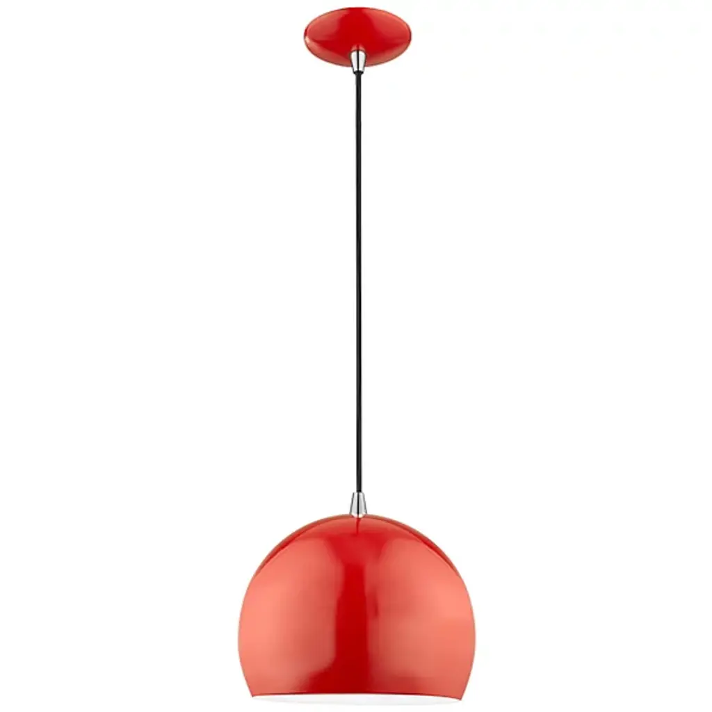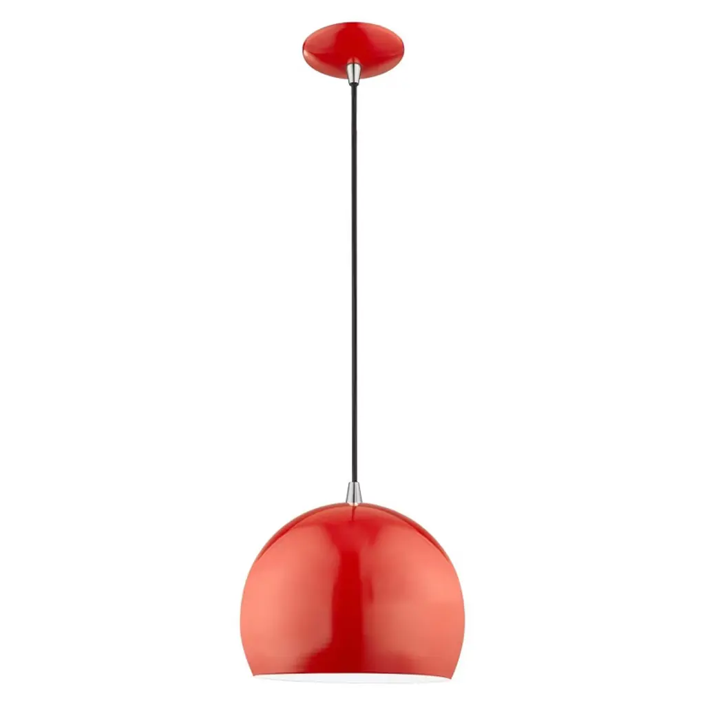 The Peterson Spherical Pendant from Alder & Ore adds a clean, modern presence to its surroundings, extending a single slender cable from a shallow canopy to a damp-listed lamp set inside a rounded dome shade fashioned from steel that curls down around it. The shade is open at its base, revealing a reflective interior that stands out from the matte-textured outer surface, and casts a memorable mix of bright downlight and warmly-reflected ambiance around the fixture.