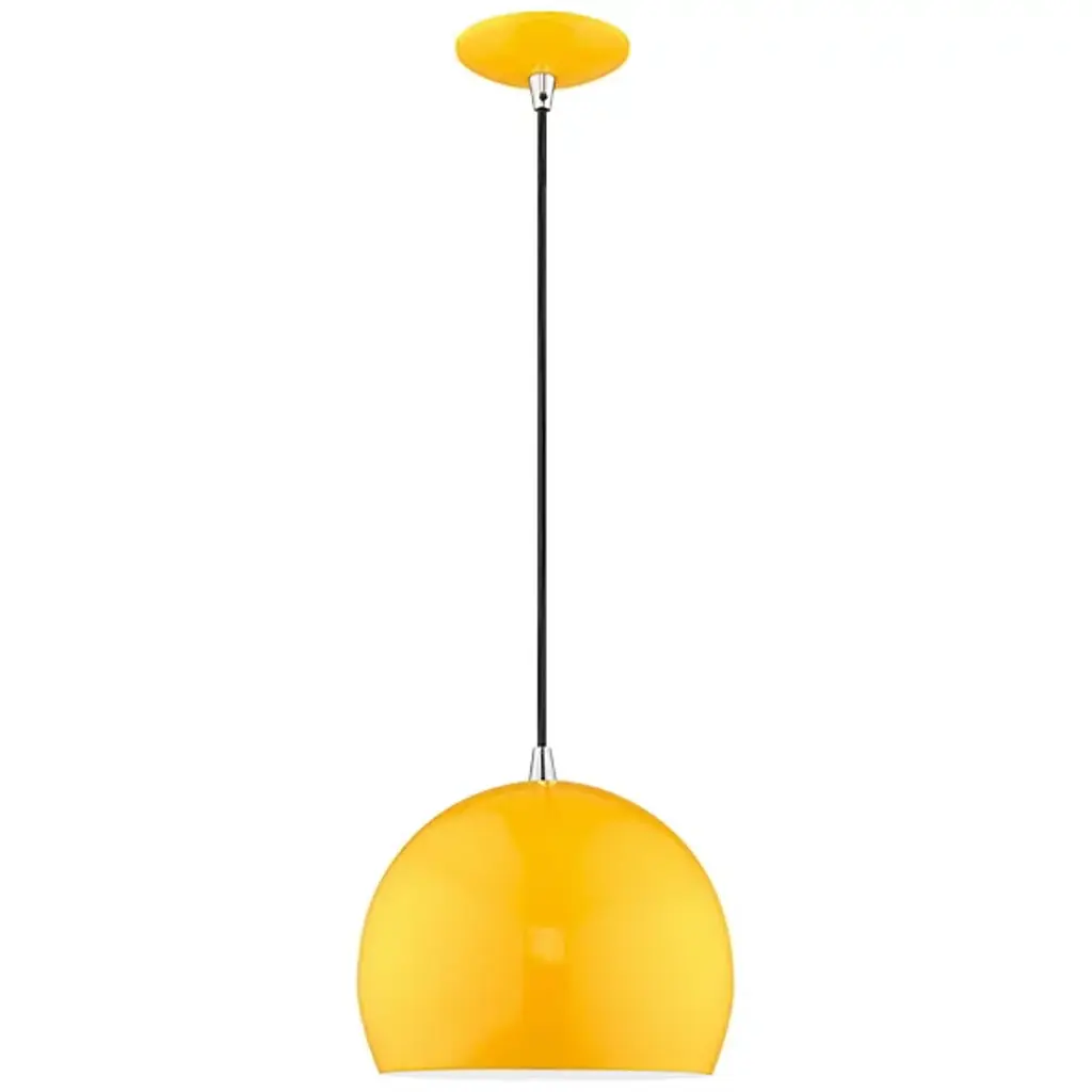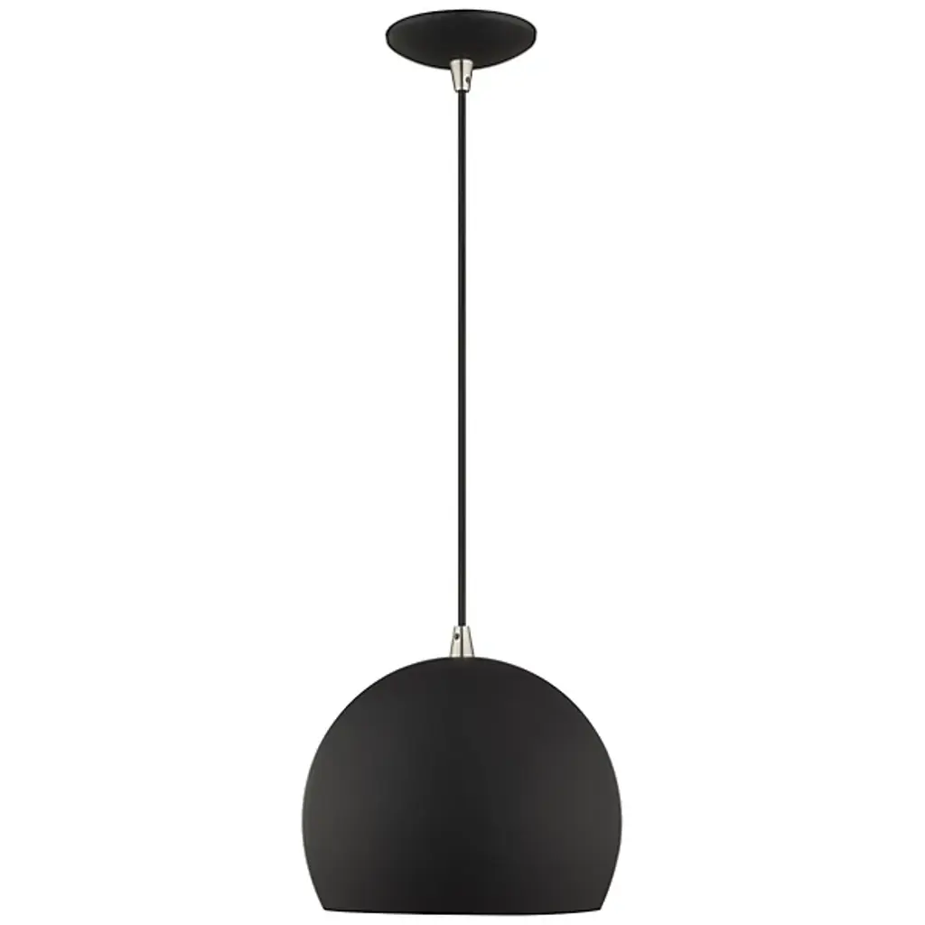 The Peterson Spherical Pendant from Alder & Ore adds a clean, modern presence to its surroundings, extending a single slender cable from a shallow canopy to a damp-listed lamp set inside a rounded dome shade fashioned from steel that curls down around it. The shade is open at its base, revealing a reflective interior that stands out from the matte-textured outer surface, and casts a memorable mix of bright downlight and warmly-reflected ambiance around the fixture.