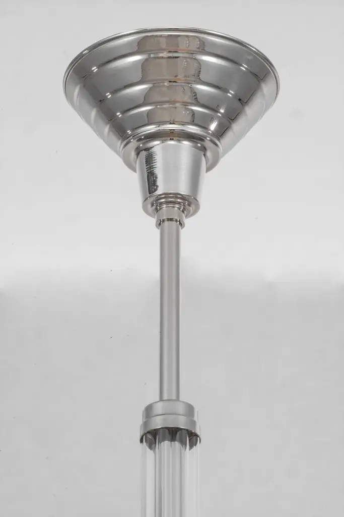 Petitot I is a suspension lamp made of brass available in different finishes.Finishes: Antique, Shiny brass, Matt brass, Shiny nickel, Matt nickelCapacity : 2x75 W E27This collection is our largest one, showcasing finest French art deco be it a chandelier, wall light, pendant, ceiling fitting, table lamp or floor light. This is where almost unadorned brass, frosted glass plate and fixed tubes made of crystal meet, resulting in lavish and impressive lighting. The collection is inspired by French designer Petitot.