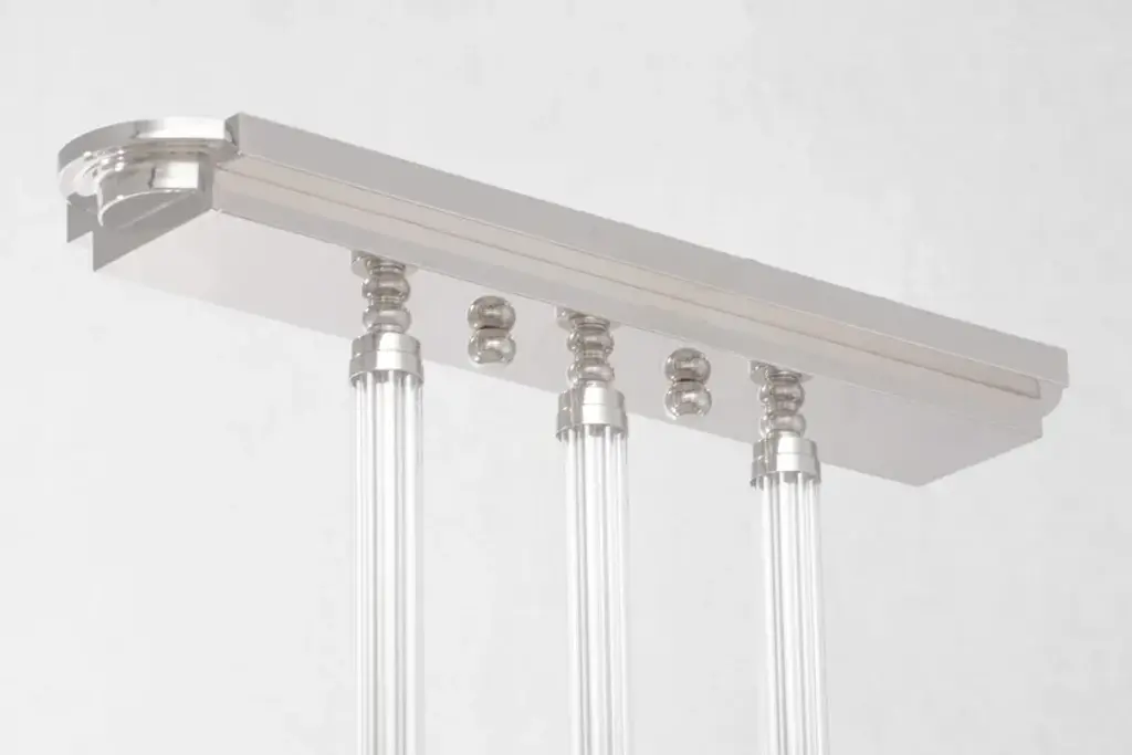 Petitot II is a suspension lamp made of brass available in different finishes.Finishes: Antique, Shiny brass, Matt brass, Shiny nickel, Matt nickelCapacity : 3x75 W E27This collection is our largest one, showcasing finest French art deco be it a chandelier, wall light, pendant, ceiling fitting, table lamp or floor light. This is where almost unadorned brass, frosted glass plate and fixed tubes made of crystal meet, resulting in lavish and impressive lighting. The collection is inspired by French designer Petitot.