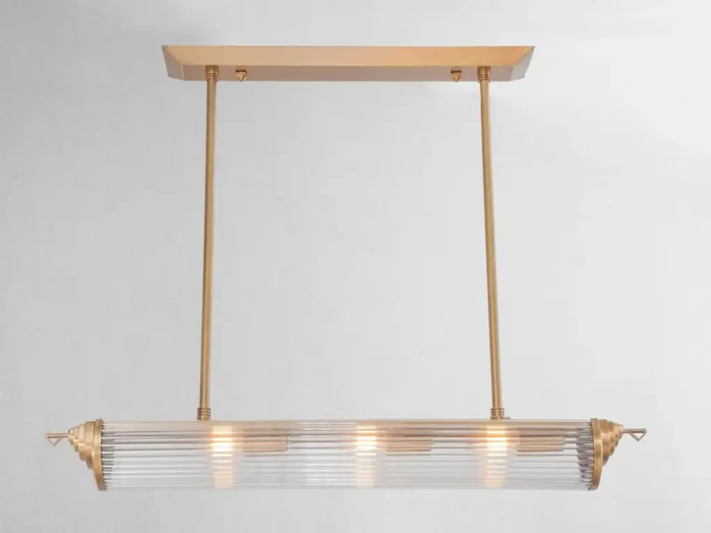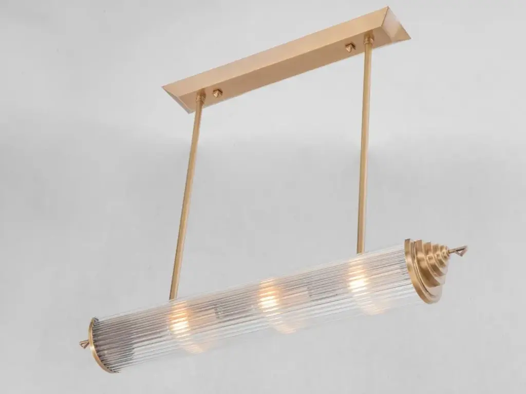 Petitot IX is a suspension lamp made of brass available in different finishes.Finishes: Antique, Shiny brass, Matt brass, Shiny nickel, Matt nickelCapacity : 3x60 W E14This collection is our largest one, showcasing finest French art deco be it a chandelier, wall light, pendant, ceiling fitting, table lamp or floor light. This is where almost unadorned brass, frosted glass plate and fixed tubes made of crystal meet, resulting in lavish and impressive lighting. The collection is inspired by French designer Petitot.
