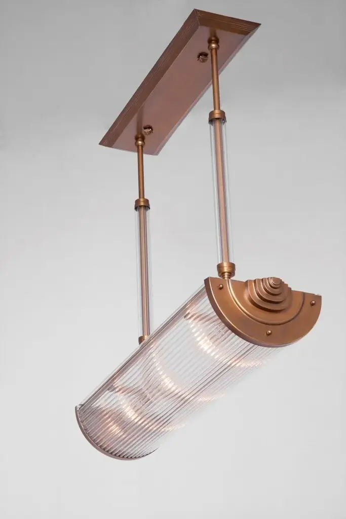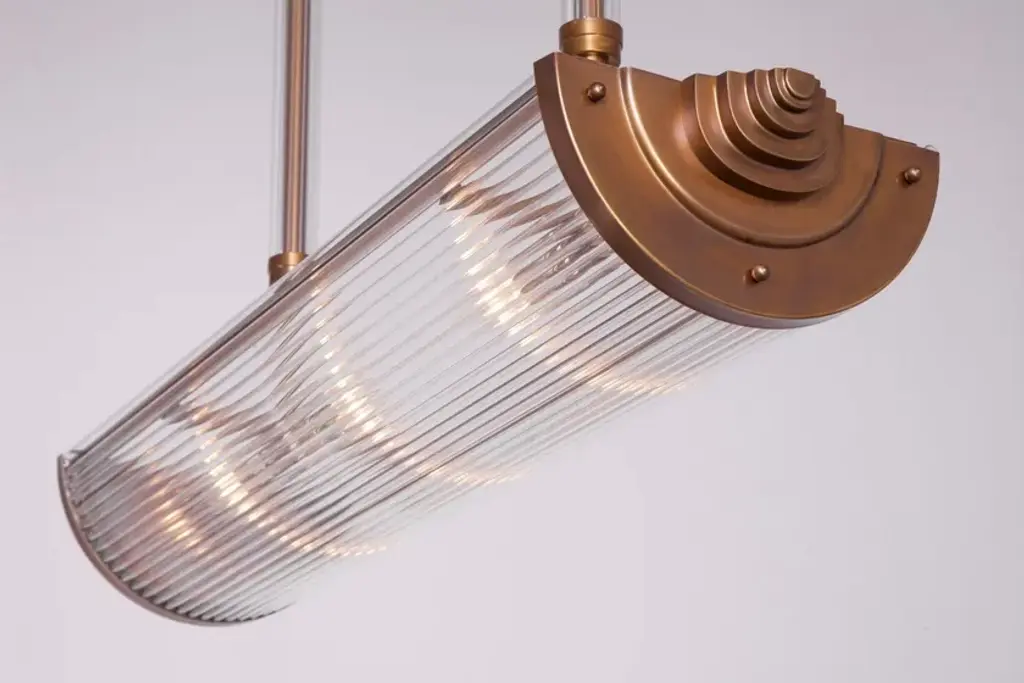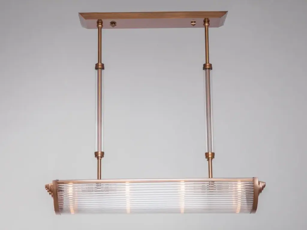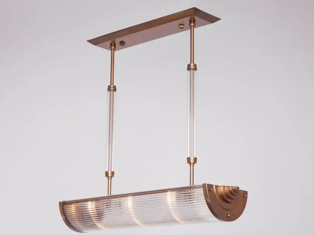 Petitot V is a suspension lamp made of brass available in different finishes.Finishes: Antique, Shiny brass, Matt brass, Shiny nickel, Matt nickelCapacity : 4x60 W E14This collection is our largest one, showcasing finest French art deco be it a chandelier, wall light, pendant, ceiling fitting, table lamp or floor light. This is where almost unadorned brass, frosted glass plate and fixed tubes made of crystal meet, resulting in lavish and impressive lighting. The collection is inspired by French designer Petitot.