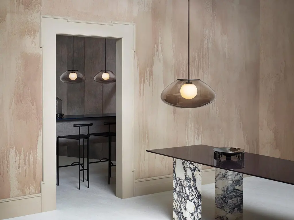 Petra small pendant by CTO Lighting.Materials: dark bronze brass with smoked glass shade and white opal glass inner shade.Also available in satin with smoked glass shade and hand shaped smoked glass inner shade,satin brass with smoked glass shade and white opal glass inner shade,dark bronze with smoked glass shade and hand shaped smoked glass inner shade.Dimensions: H 21.5 x W 40 cm All our lamps can be wired according to each country. If sold to the USA it will be wired for the USA for instance.Other sizes available.1 x E12, 60w max (or 6.5w LED 2700k)weight 8kg (17.6lbs)supplied with 1000mm drop rod as standard (adjustable on site)for installation a minimum drop rod of 100mm (4”) is required, maximum 3000mm (118”)no bulbs suppliedmounts onto 4” junction boxFounded in 1998 by Chris and Clare Turner, CTO Lighting launched their first collection on the guiding principles of designing lights of uncompromising quality, using only the finest materials and working with elite British craftsmen. This collection of lighting symbolised elegance and the excellence of British design and manufacturing; the benchmark for all future collections.