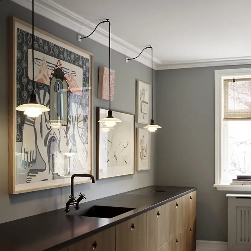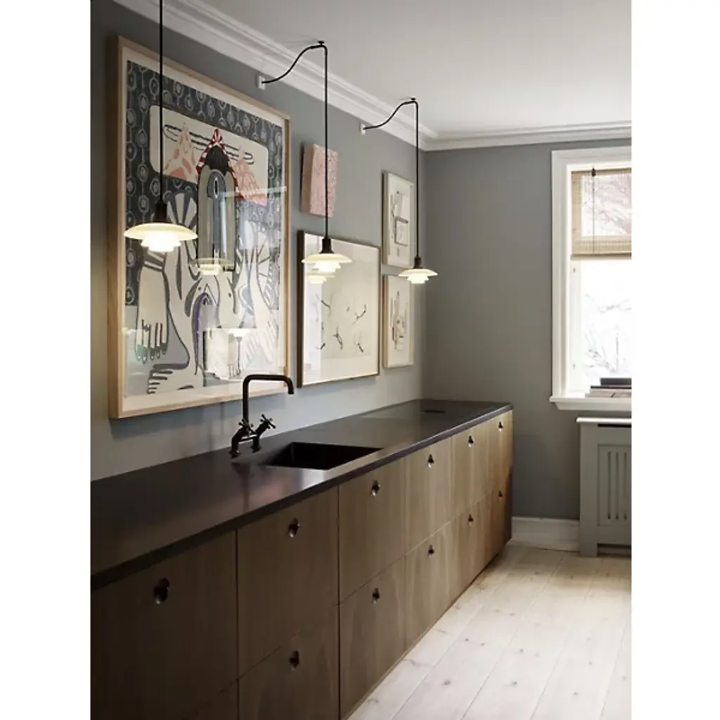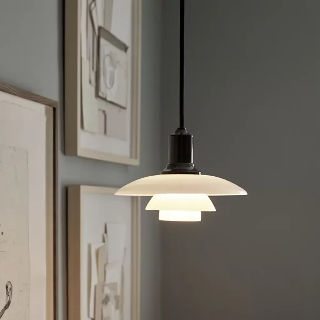 The PH 2/1 Mini Pendant Light from Louis Poulsen is design with nearly a century of staying power. Designed by Poul Henningsen in 1925, features a 3-shade system that astonished at the time and continues to please to this day. The piece sought to provide focus on every aspect of its light. Layers of opal hand-blown glass open gently as they reach the base. Its 2 lower shades focus light into a warm downlight, while its top shade captures residual lighting for a beautiful domed accent. You’ll appreciate the piece’s refined quality when ordered over your dining room table.