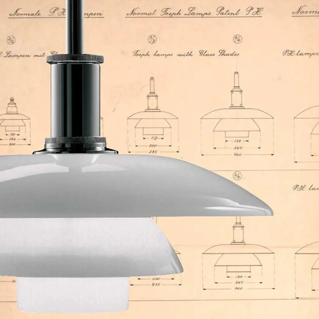 The PH 2/1 Pendant Lamp is a member of the of the PH 3-shade family principles, which were developed in the winter of 1925-26 for a large exhibition hall in Copenhagen, Denmark called "Forum". The PH 2/1 Pendant Lamp provides a primarily upward illumination. It is based on the principle of a reflecting multi-shade system, creating a harmonious and glare free illumination. All handblown opal glass shades are sandblasted on the undersides for uniform light distribution.