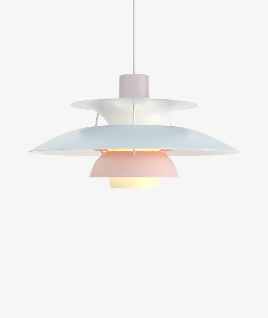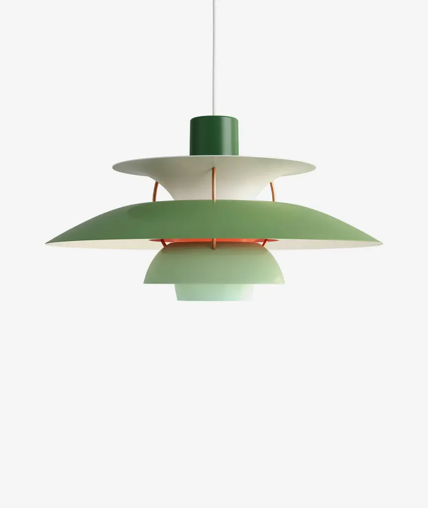 This fixture provides a comfortable, glare-free light based on the principle of Poul Henningsen’s reflective three-shade system, which directs the majority of the light downward. It emits a lateral light as well as illuminating itself, providing a soft radiance from within its core. The lower shade is fitted with a frosted-glass diffuser to ensure that the downwardly directed light is 100% glare-free. This product is compliant with the requirements contained in the European Directives, RoHS Directive 2011/65 and 2015/863. This product is designed so that 100% of the product can be disassembled and reused. Finish: White Classic or White Modern: matte powder coated. Monochrome Pale Rose, Monochrome Oyster Grey, Monochrome Black, Monochrome Blue or Monochrome White: matte, wet painted. Pastels Oyster Blue Rose or Pastels Blue Rose Peach: matte wet painted. Hues of Blue, Hues of Green, Hues of Grey, Hues of Orange, Hues of Red, Hues of Rose: matte wet painted. Metal variants: Polished Brass or Copper: matte, powder coated. Please note that the copper and brass surface is untreated. This means that the surface will change over time and develop a patina. Materials: Lower shade: Spun steel. Other shades and anti-glare disc: Spun aluminum, spun copper or spun brass. Struts: Rolled aluminum.