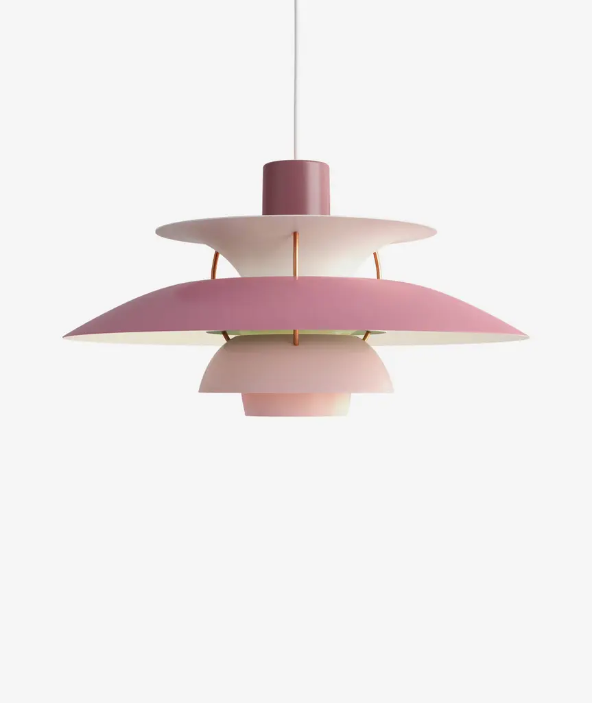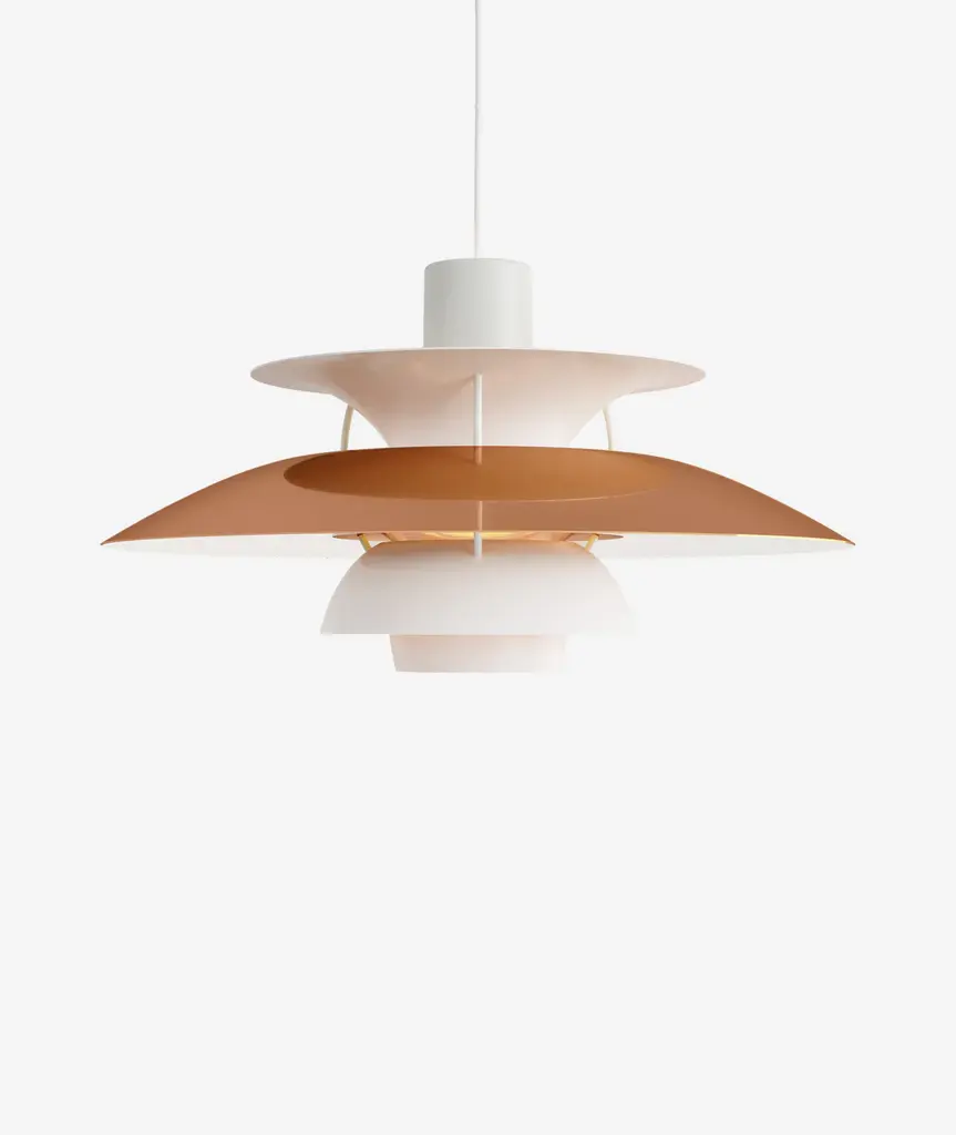 This fixture provides a comfortable, glare-free light based on the principle of Poul Henningsen’s reflective three-shade system, which directs the majority of the light downward. It emits a lateral light as well as illuminating itself, providing a soft radiance from within its core. The lower shade is fitted with a frosted-glass diffuser to ensure that the downwardly directed light is 100% glare-free. This product is compliant with the requirements contained in the European Directives, RoHS Directive 2011/65 and 2015/863. This product is designed so that 100% of the product can be disassembled and reused. Finish: White Classic or White Modern: matte powder coated. Monochrome Pale Rose, Monochrome Oyster Grey, Monochrome Black, Monochrome Blue or Monochrome White: matte, wet painted. Pastels Oyster Blue Rose or Pastels Blue Rose Peach: matte wet painted. Hues of Blue, Hues of Green, Hues of Grey, Hues of Orange, Hues of Red, Hues of Rose: matte wet painted. Metal variants: Polished Brass or Copper: matte, powder coated. Please note that the copper and brass surface is untreated. This means that the surface will change over time and develop a patina. Materials: Lower shade: Spun steel. Other shades and anti-glare disc: Spun aluminum, spun copper or spun brass. Struts: Rolled aluminum.