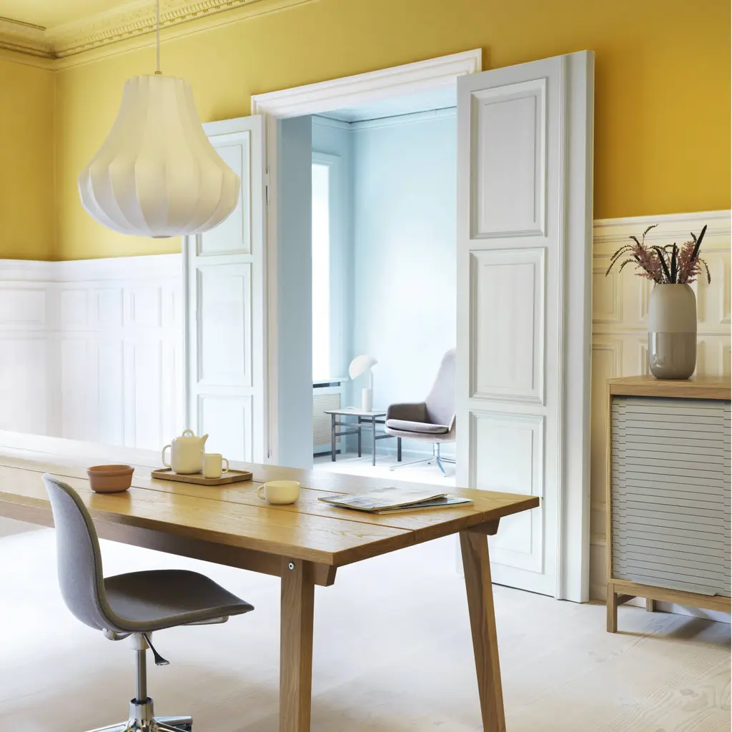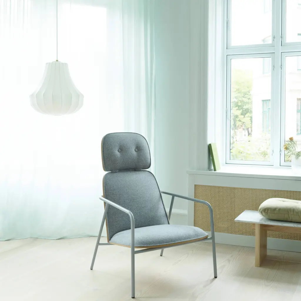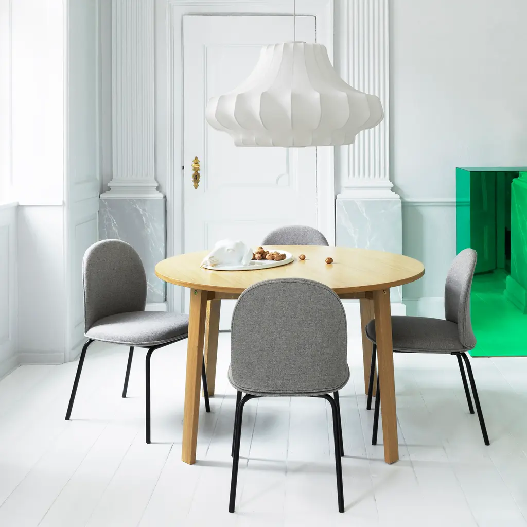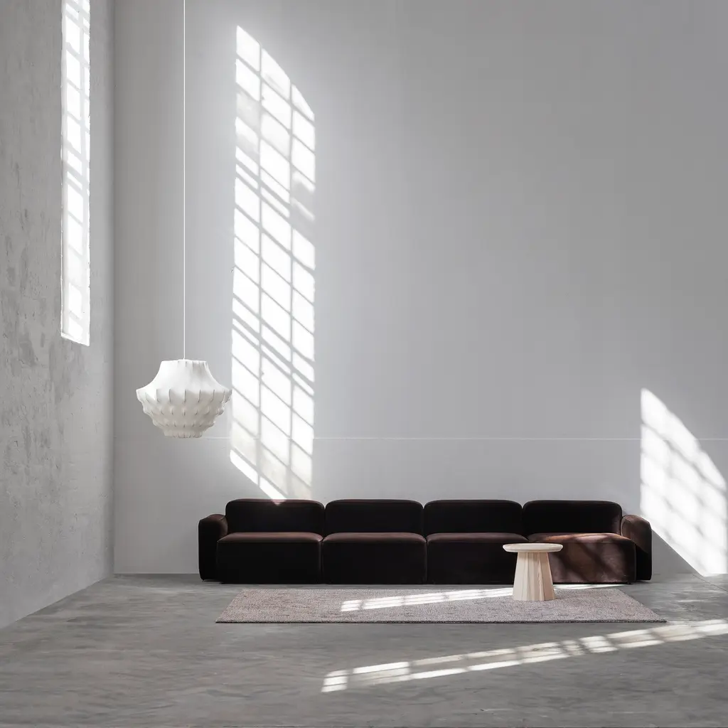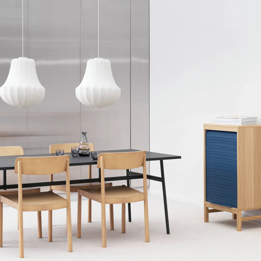 In a series of 3 sizes each with its own distinctive shape, Phantom starts with a steel skeleton, around which elastic resin is sprayed in closely-spaced threads, much like a silkworm forms its cocoon. Simon Legald’s voluminous pendant is tightly wrapped in the special semi-transparent material, yielding a dramatic silhouette inspired by an iconic chandelier of the past. Veiled in ivory as an echo of the original shape, Normann Copenhagen’s fixture emits an indirect, diffuse light that creates warm and atmospheric illumination.
