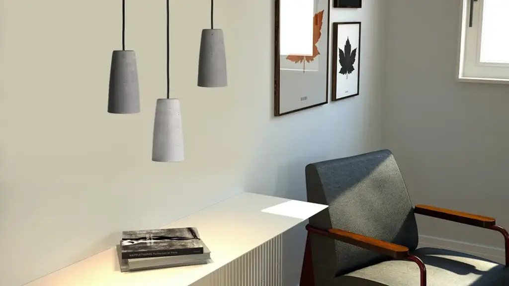 Phari pendant lamp is designed by Urbi et Orbi Studio in 2013. Made of cast concrete.Its name "Phari" means lighthouse. A bright beam made of concrete. Phari has a minimal organic shape that highlights the material's plasticity, as well as its nature. The beam of light it emits, transforms this decorative fixture into a pendant spot, emphasizing selected areas in private or public spaces. makes a statement in any space it inhabits.This concrete suspension lamp is produced through our company's Zero Waste Project developed over the past 3 years, with a recycling rate of 20%.Phari pendant lamp is available in 4 shades of grey, and various colors ranging from warm to cool tones like beige, terracotta, olive green, dusty blue, etc. and in a terrazzo finish.Socket: GU10CE - IP20