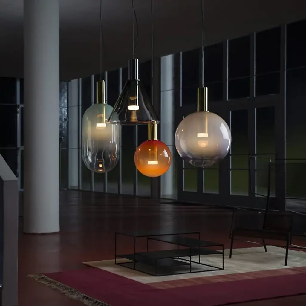 An enduring piece inspired by fleeting moments. The Phenomena Mini Pendant from Bomma captivates with pure, pristine shapes layered with magical reflections. Creator Dechem Studio relays the beauty of the glass material. Here, the glass’s partner is an equally crisp metal cylinder that displays trails of elegant reflections. This cylinder conceals the light behind a glare-softening diffuser. Light fills up the handblown glass shade for a highlighted display of clean geometry. Featuring distinct notes, the shade gives the light an airy quality for a cozy atmosphere.